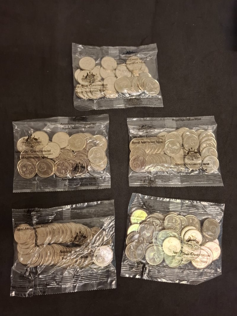 FIVE 2016 CHANGE OVER RAM BAG OF 40 X 5C UNCIRCULATED COINS 584448+65
