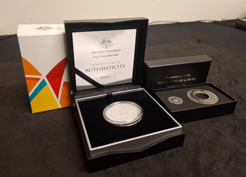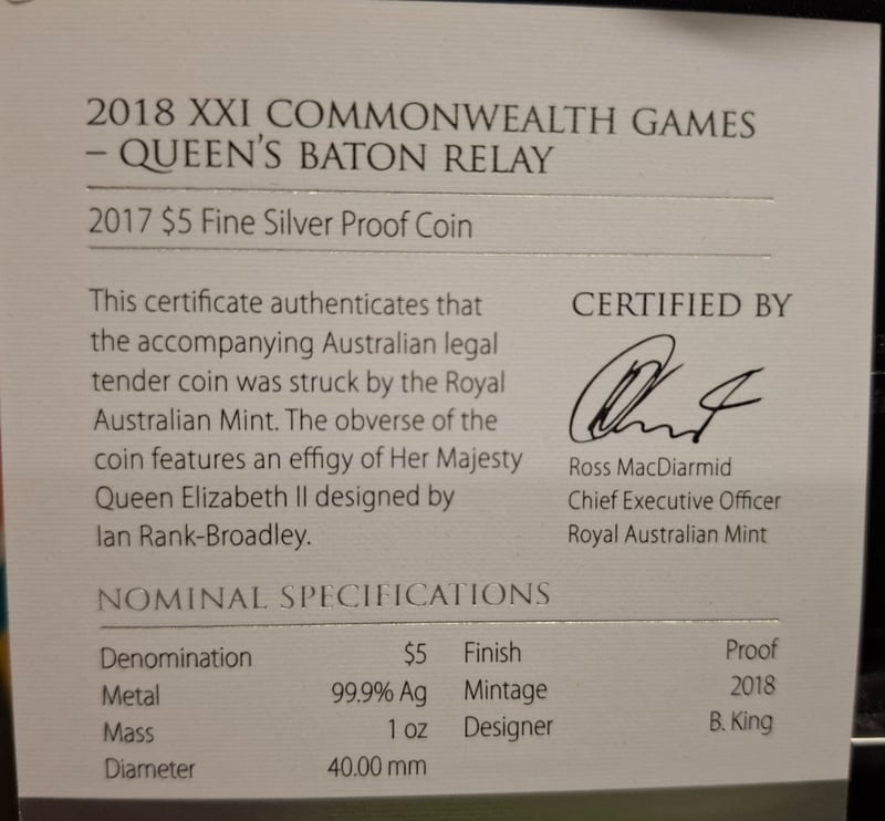 COLLECTION OF AUSTRALIAN COINS Years Includes 2017 $5 Fine Silver Proof Coin 2018 Xxi Commonwealth Games -Queen'S Baton Relay, And 2013 Bicentenary Of The New Holey & Dump Medallion Set 584448+80