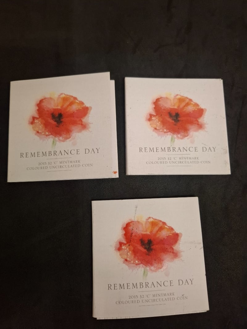 2015 $ 2 "C" MINTMARK COLOURED UNCIRCULATED COINS REMEMBRANCE DAY 584448+95