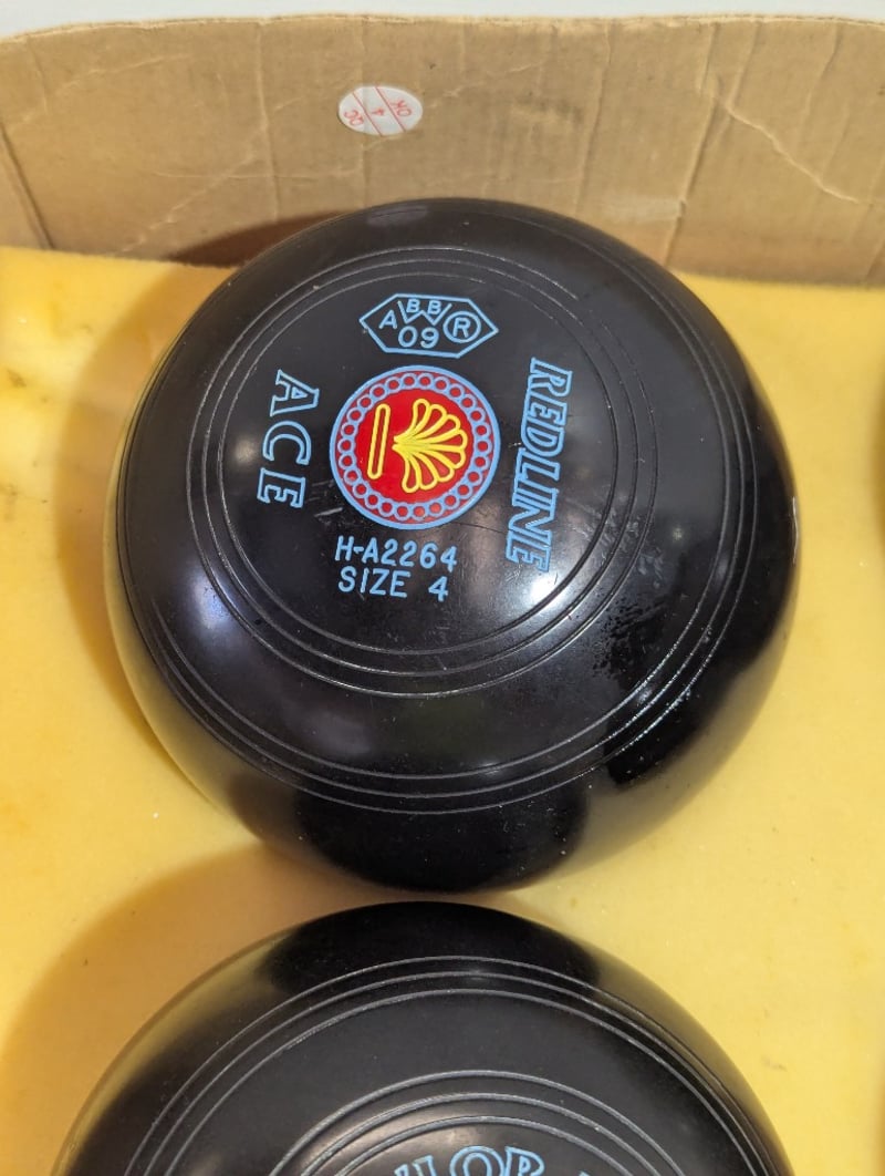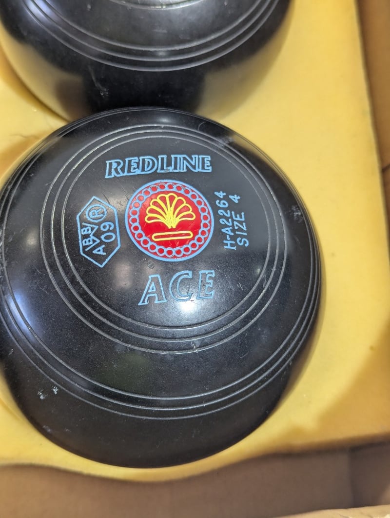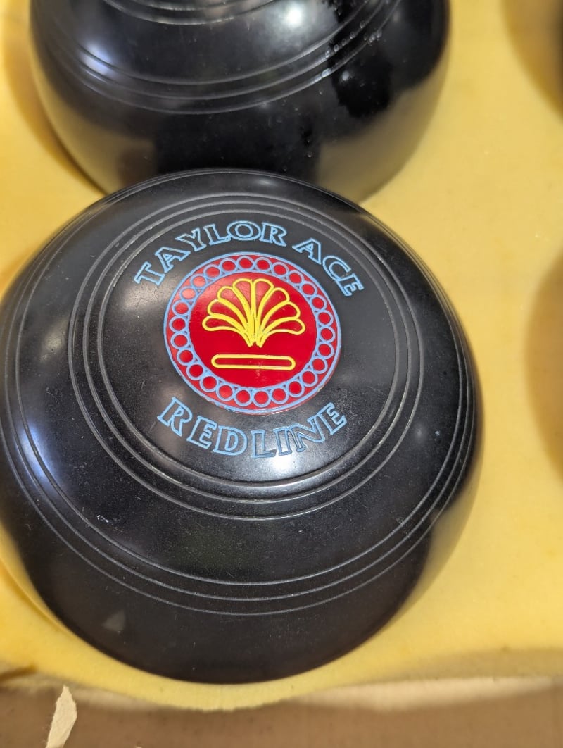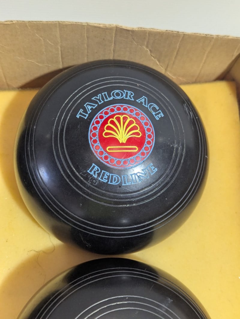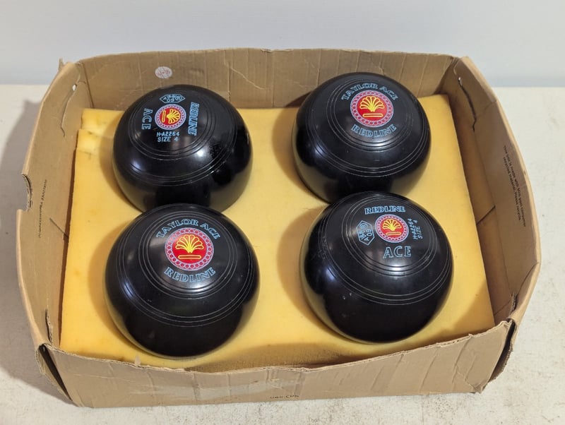 Lawn bowls, Taylor Ace Redline, black, size 4, set of four SOLD AS LOT