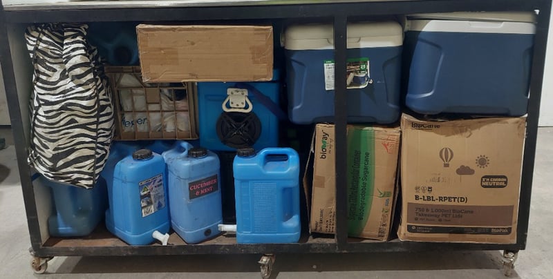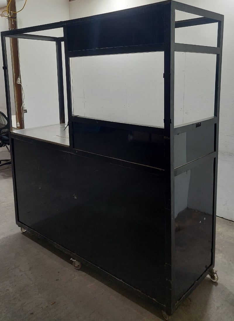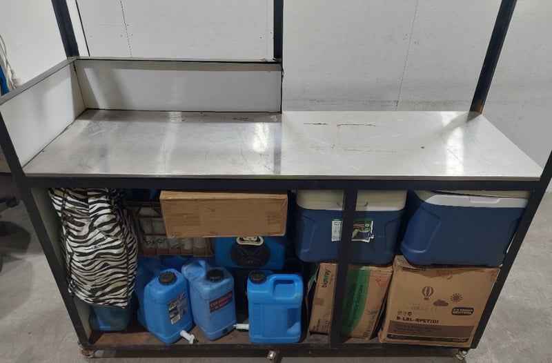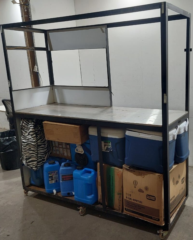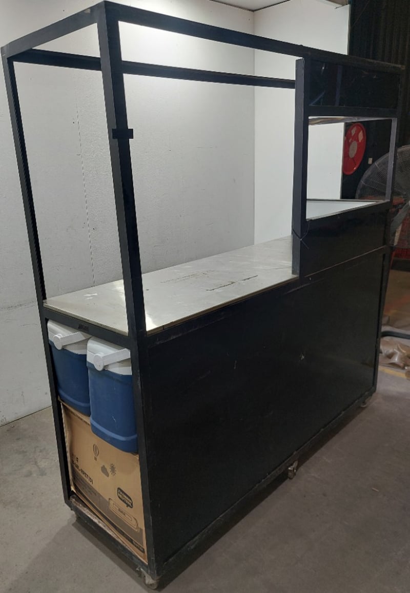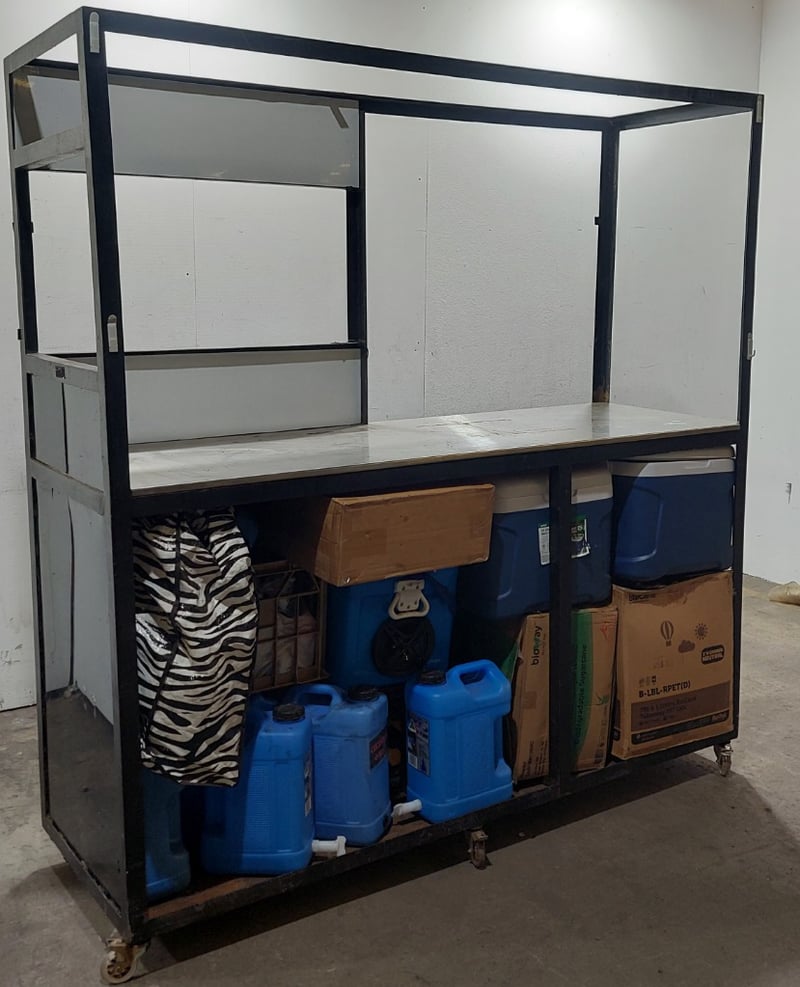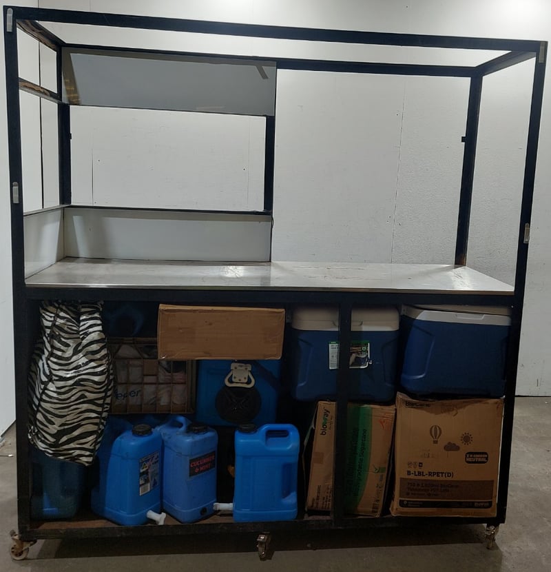 Metal food stall or mobile kitchen cart, including cooler boxes, camper carriers, plastic rectangle containers and more...