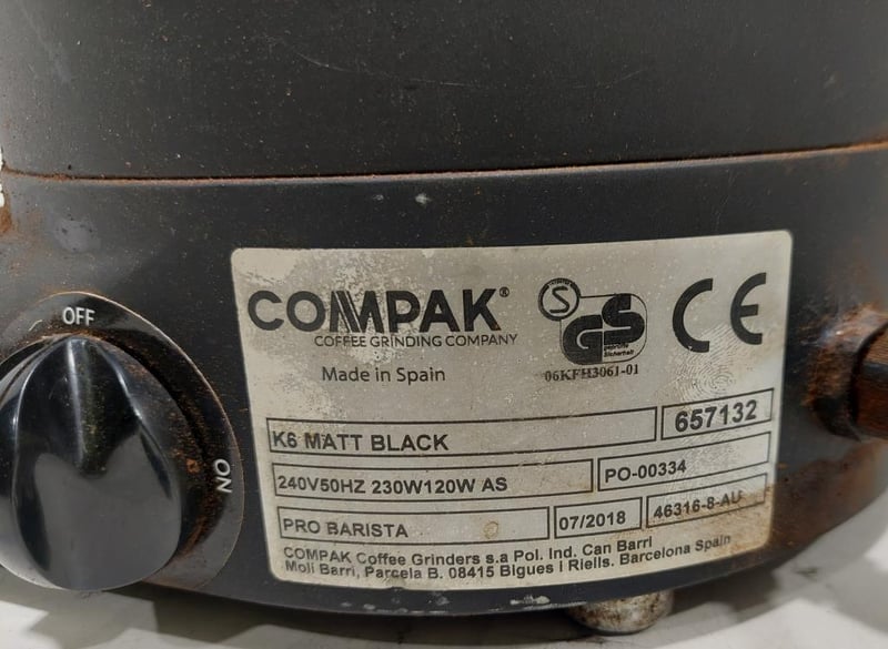 Compak K6 Silenzio PB commercial coffee grinder.Note: item is untested, signs of wear, may be missing parts.