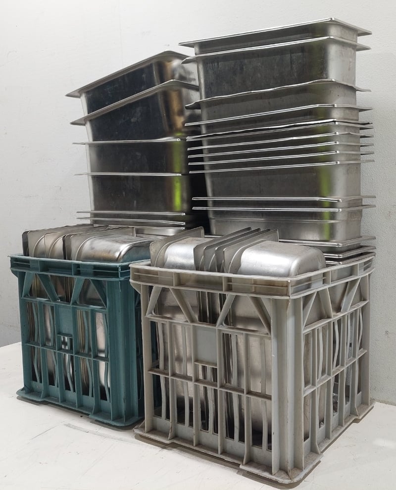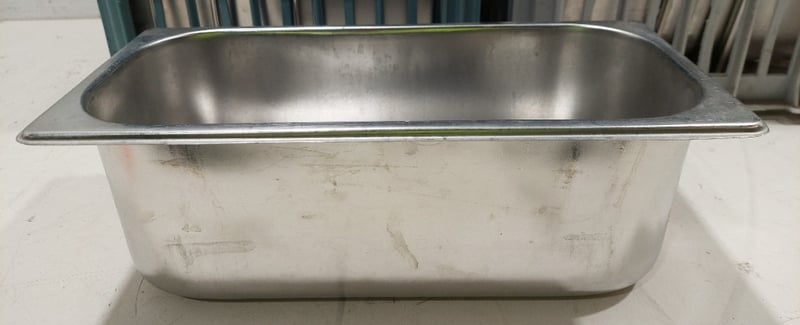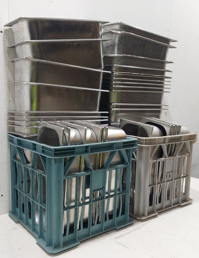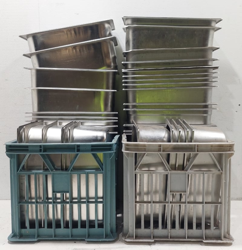 Assorted stainless steel gastronorm pans. Sold as a lot. Note: signs of wear.