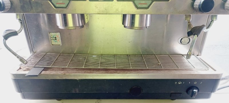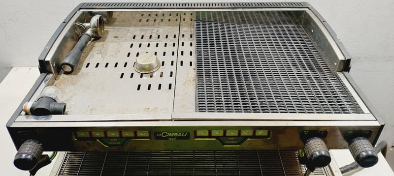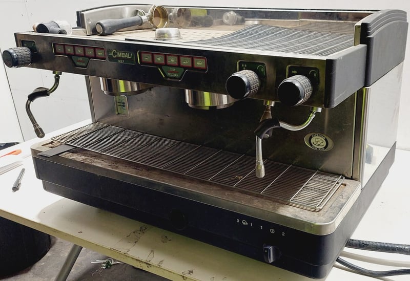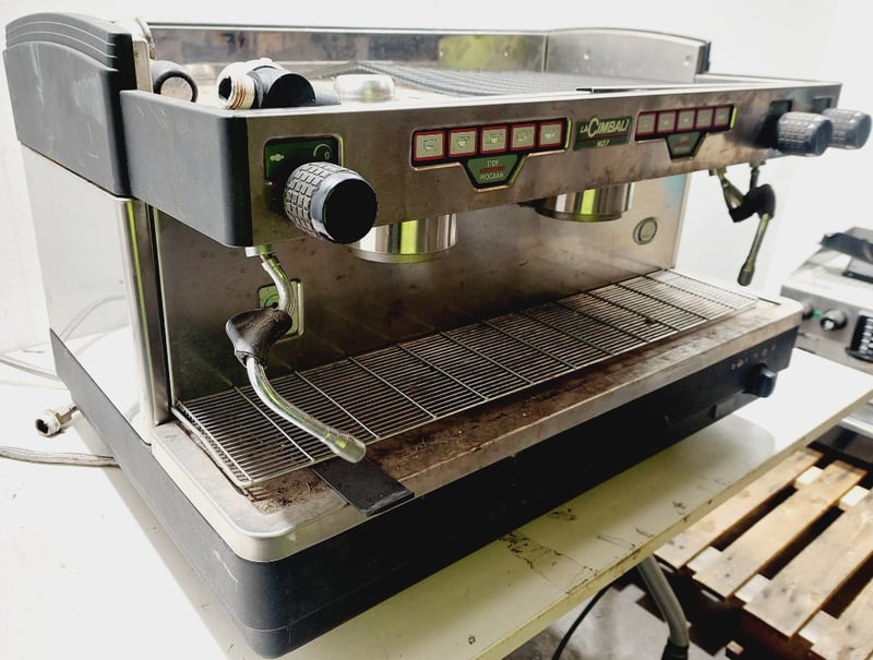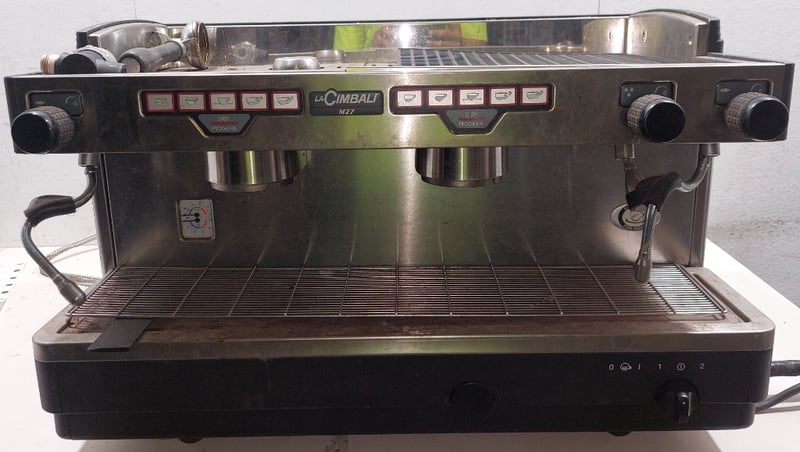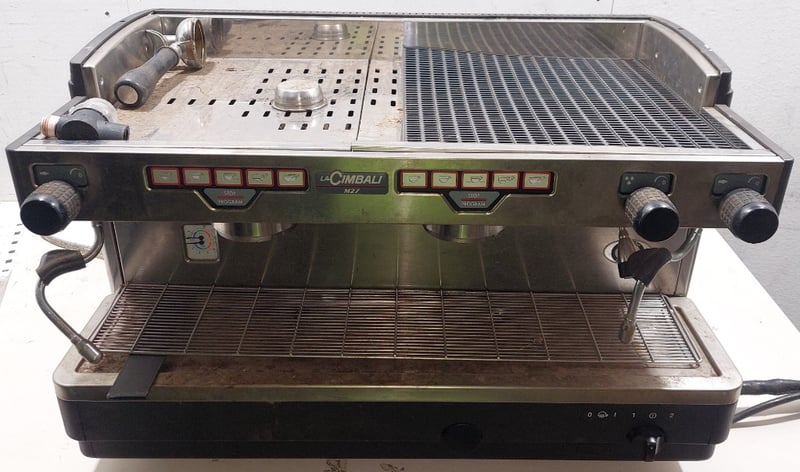 La Cimbali M27 traditional espresso coffee machine. Dimenzions: 76cm L, 50cm H, 50cm W Note: item is untested, signs of wear, may be missing parts.