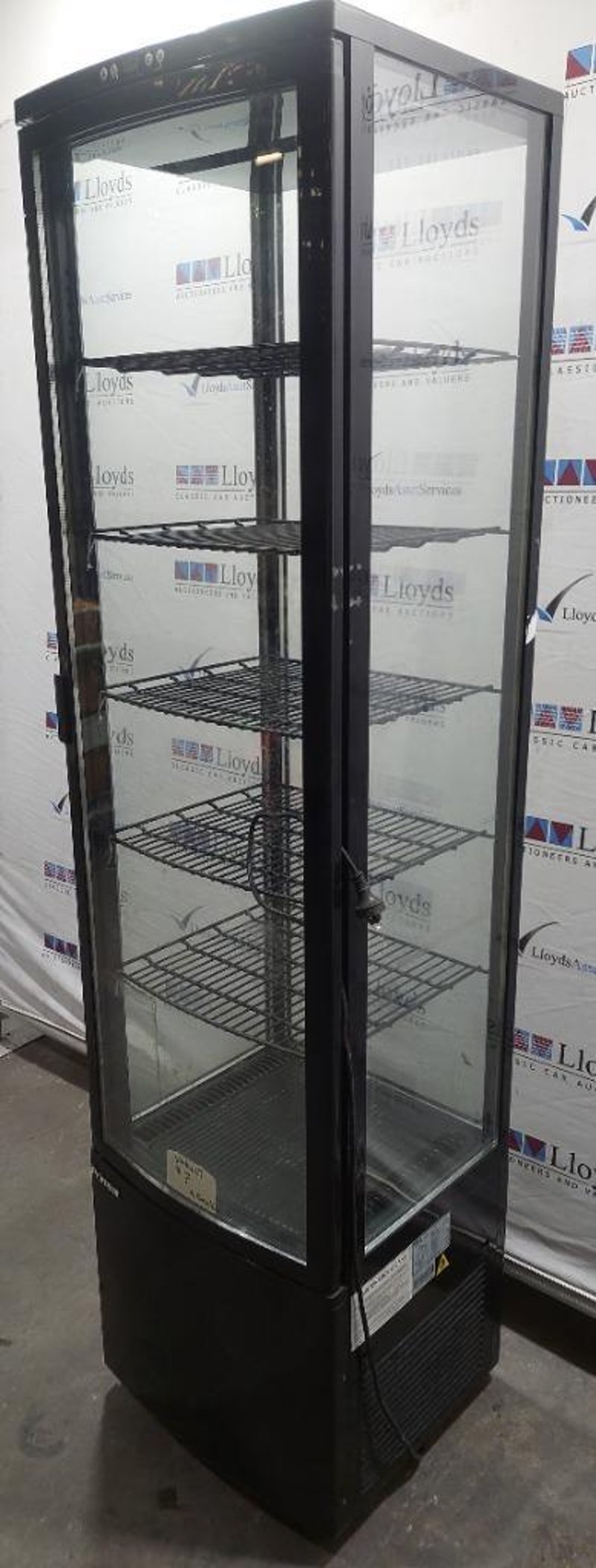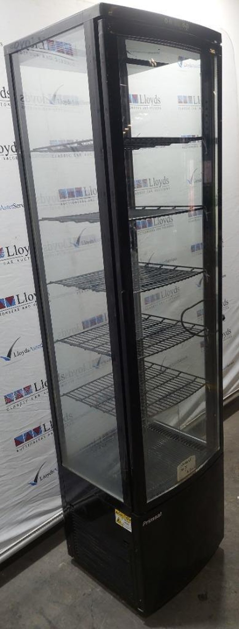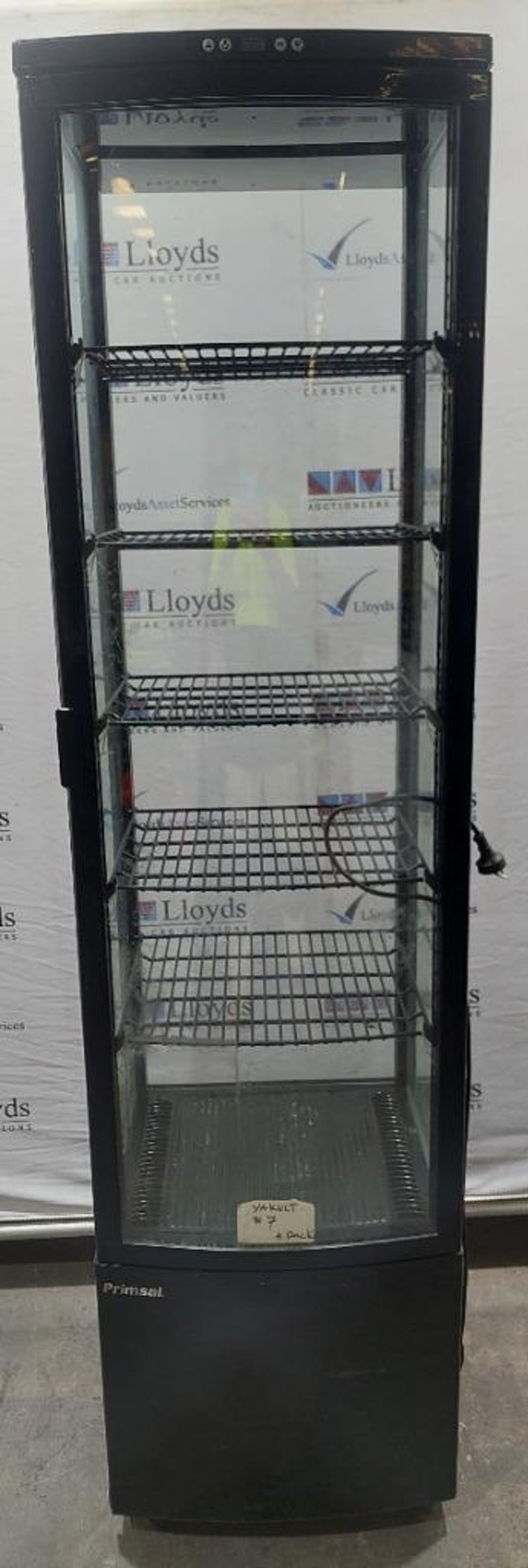 Primsal All Glass Display Upright Cooler, PRDC429 8UCA. Black Frame, 6 Tier. 220V-240V, 50Hz. 350WDimension: (H)198cm x (W)52cm x (D)50cmNote: Untested, Damage to Plug, Signs of wear