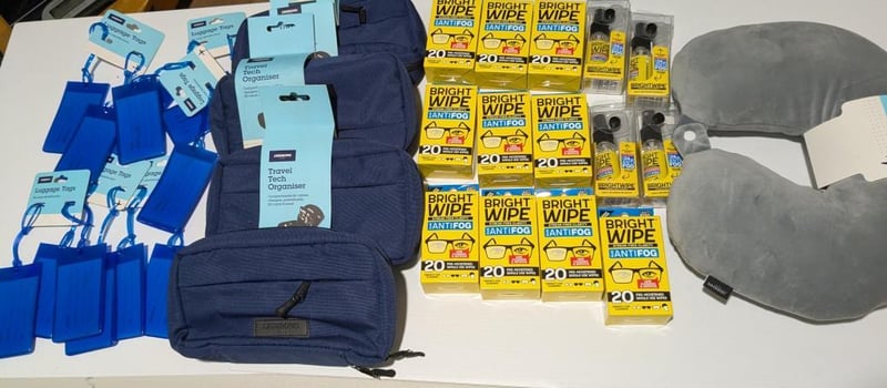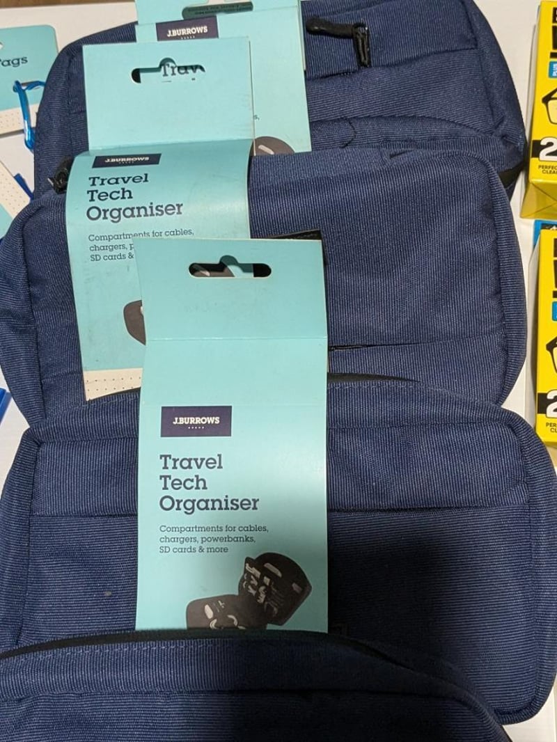 Bulk lot of travel goods incl tech organiser, luggage tags, travel pillow & lens cleaners, $150 value approx, sold as lot
