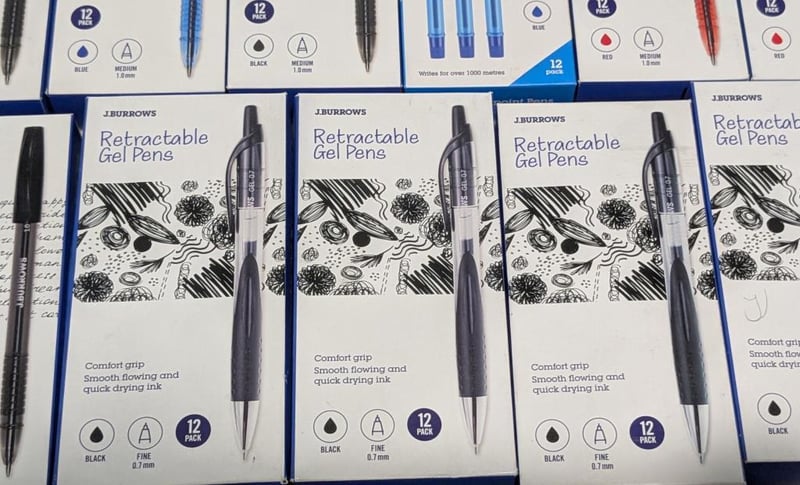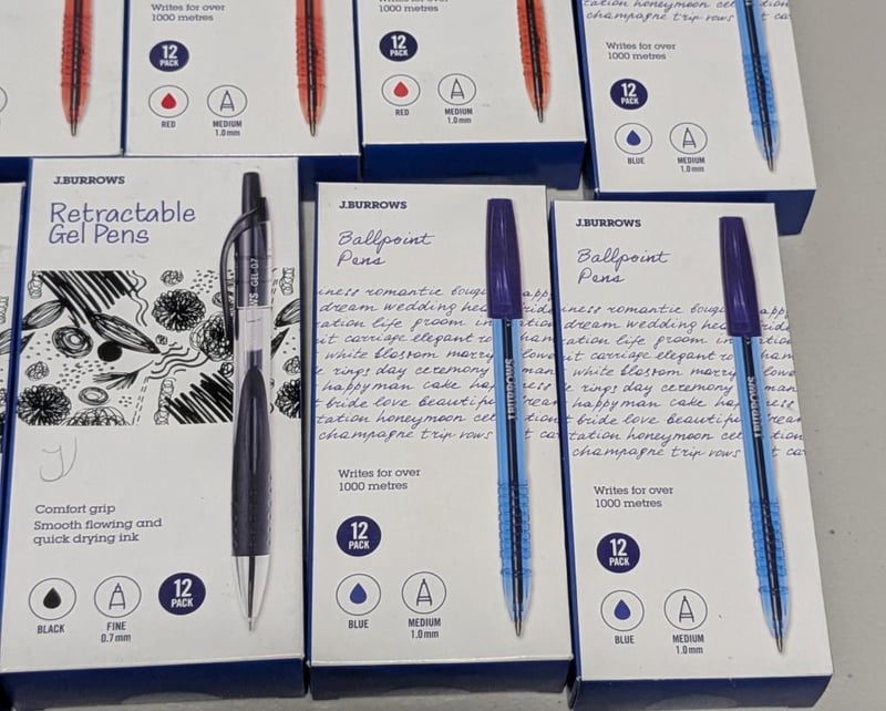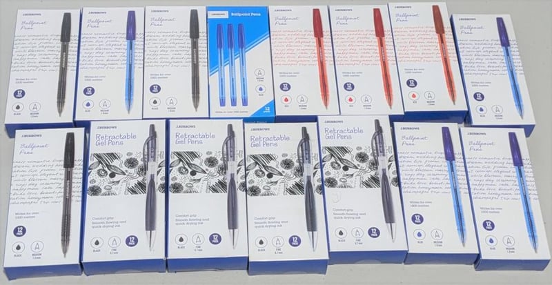 Bulk lot Burrows retractable gel pens & ballpoint pens, $120 value approx, sold as lot