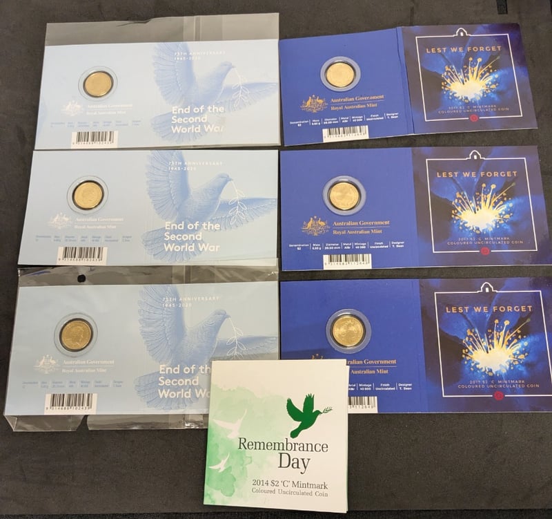 AUSTRALIAN COMMEMORATIVE COIN COLLECTION - END OF SECOND WORLD WAR & REMEMBRANCE DAY (2014-2020)