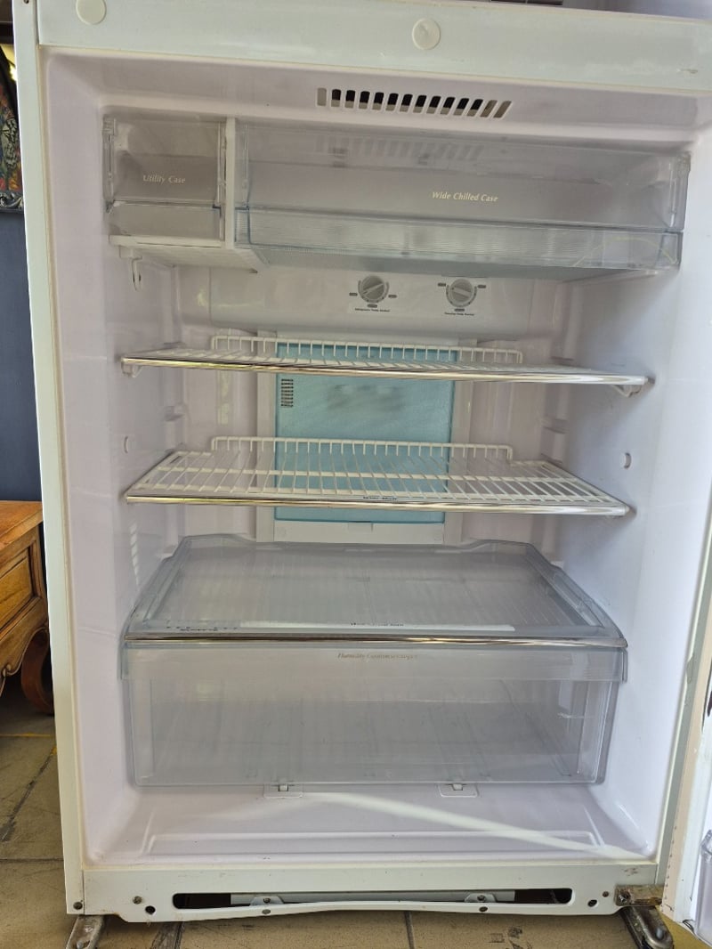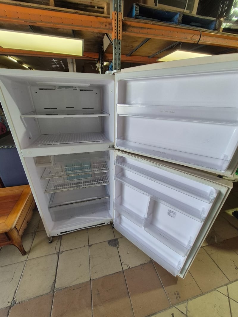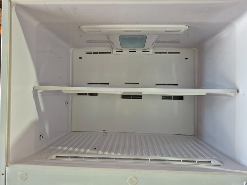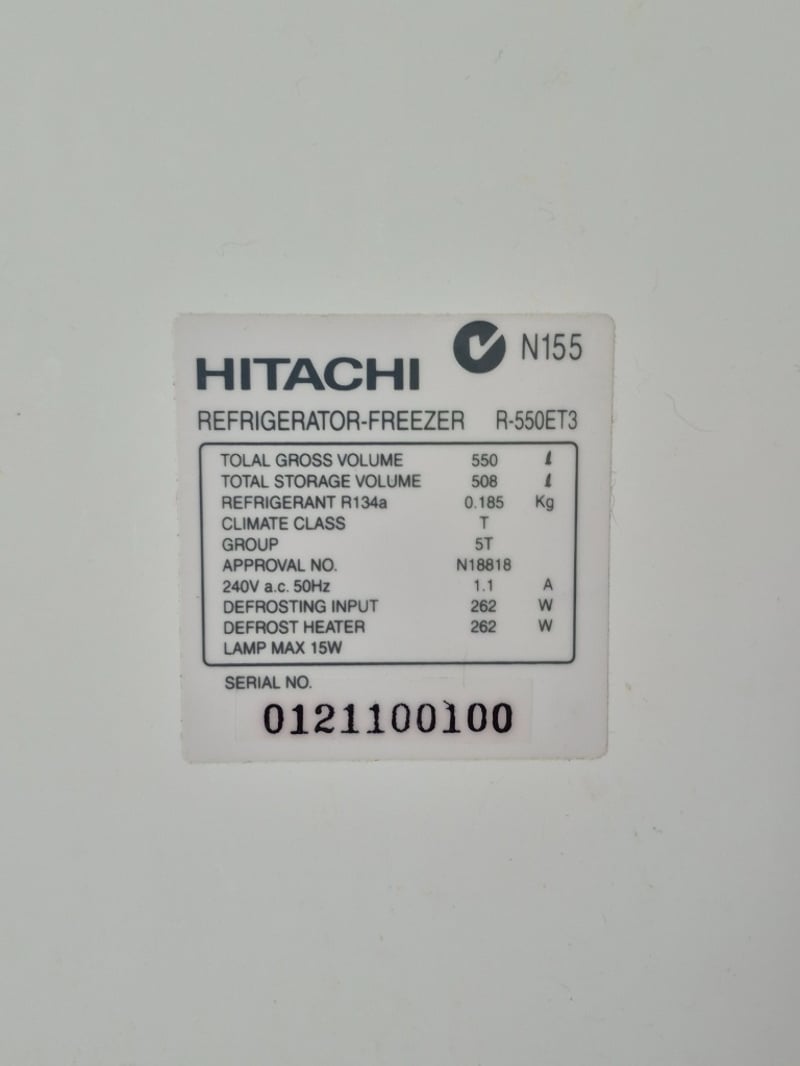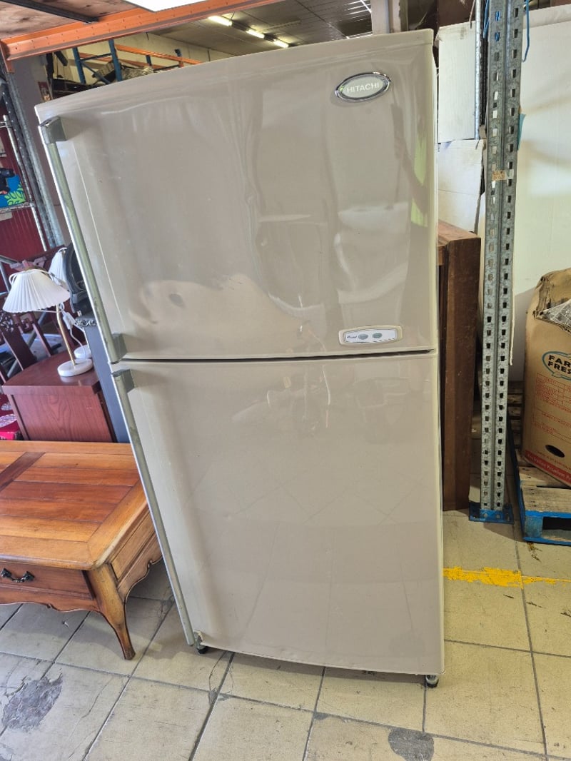 Hitachi top-mount refrigerator, beige/light brown finishSerial number: 0121100100Dimensions: H: 171cm W: 84cm D: 76cm