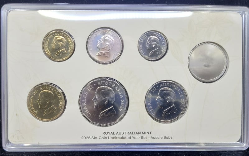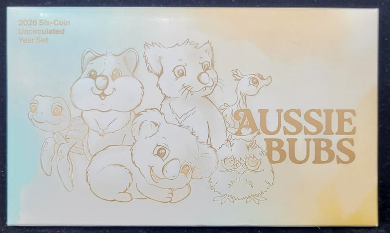 ASSORTED AUSTRALIAN COINS 2026 Six Coin Aussie Bubs Set, 2001 State Proof Coi Set, 25Th Anniversary Of America'S Cup Victory 50C In Card, 2010 150Th Anniversary Of The Burke & Wills Expedition Two Coin Set, Two 1987 Mint Coin Sets 582940+3