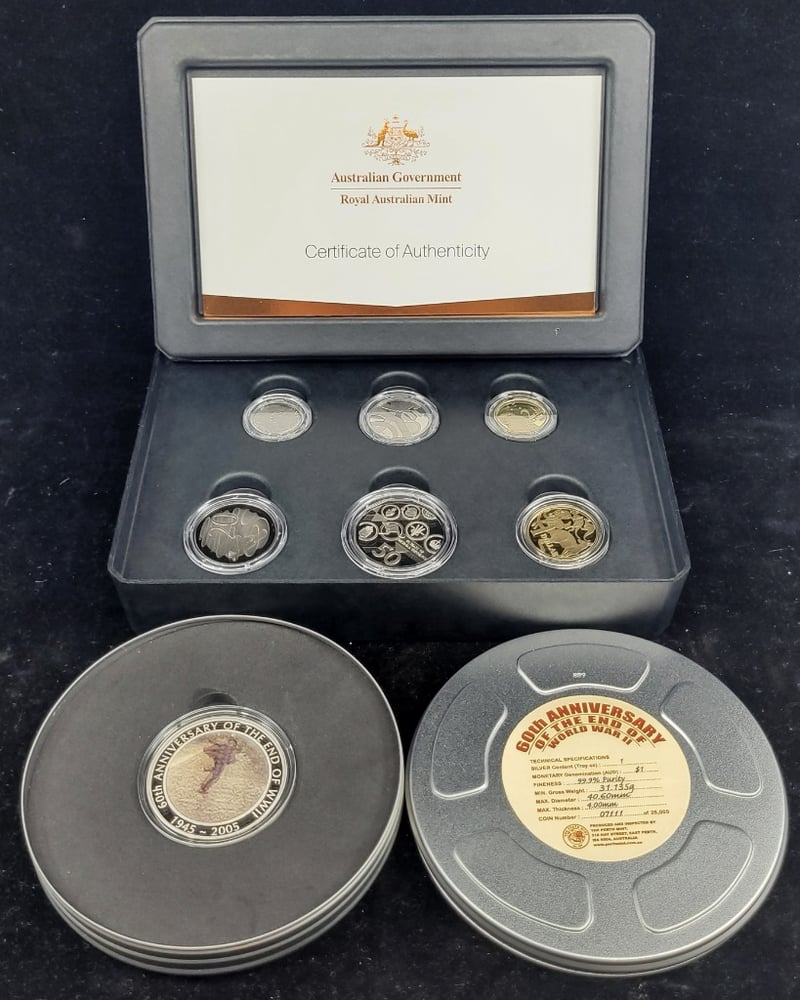 2026 Six Coin Australian Decimal Currency Sixtieth Anniversary Set, 1945-2005 Silver $1 60Th Anniversary Of The End Of World War Ii Coin