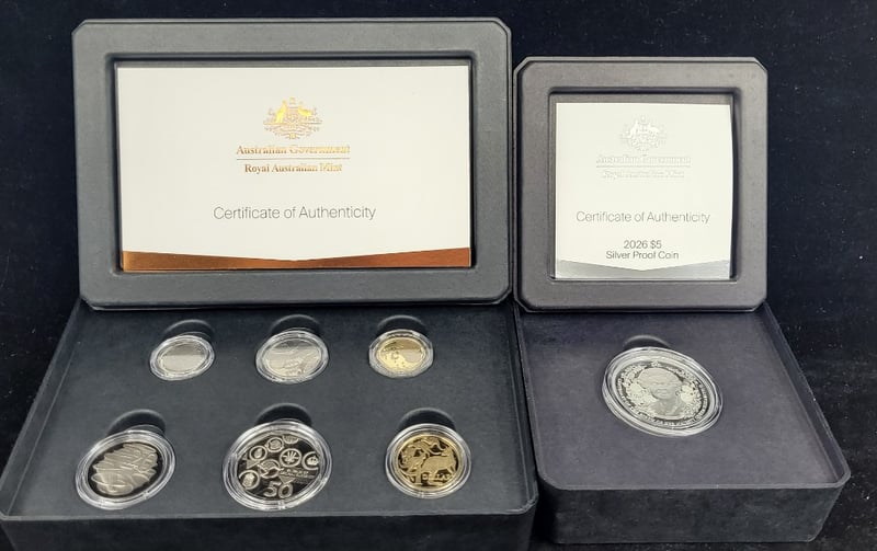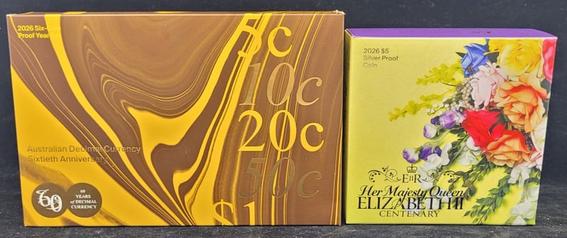 AUSTRALIAN COINS 2026 Six Coin Australian Decimal Currency Sixtieth Anniversary Set, 2026 Silver $5 Her Majesty Queen Elizabeth Ii Centenary Coin 582940+16