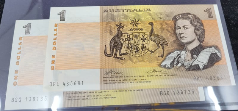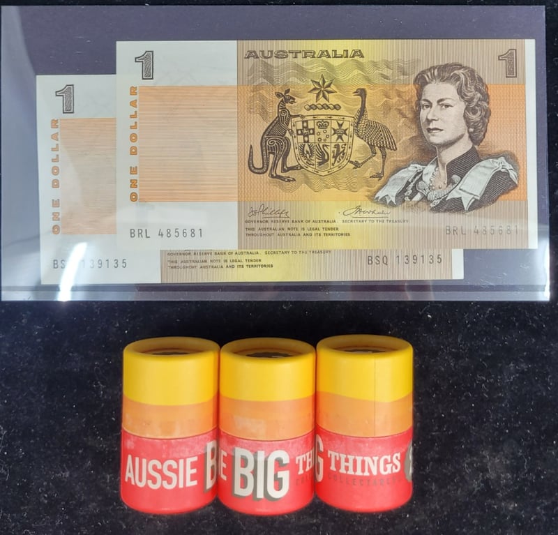 Two $1 Australian Bank Note, Three Ten Coin Aussie Big Things Collection