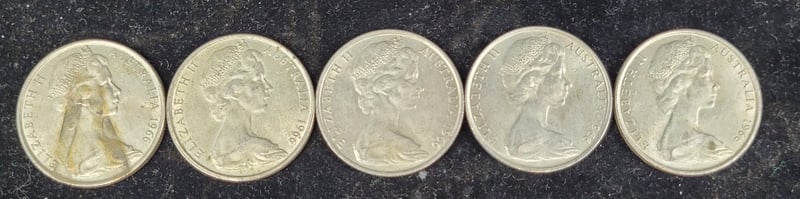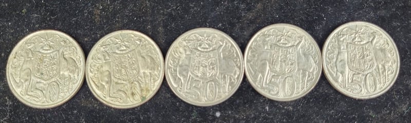 AUSTRALIAN COINS Five 1966 50C Coins 582940+31