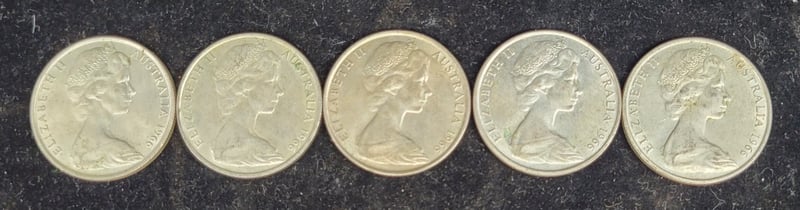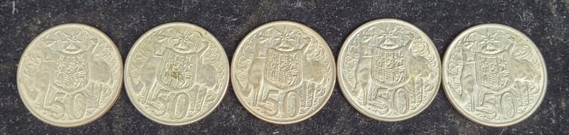 AUSTRALIAN COINS Five 1966 50C Coins 582940+33