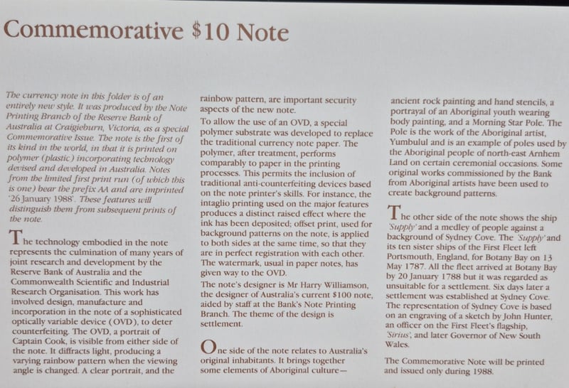 COMMEMORATIVE AUSTRALIAN $10 NOTES - AA PREFIX Quantity X4 Condition: Unc 582940+62