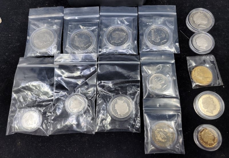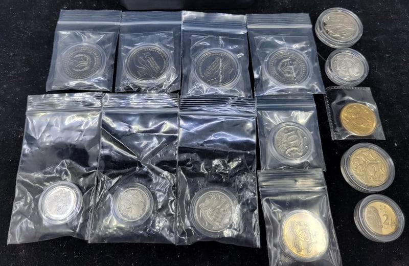 ASSORTED AUSTRALIAN COINS 2008 50C In Card, 1987 Mint Set In Card, 2024 $1 Fine Silver Coin, 2001 $2 Gold Coin Etc 582940+2