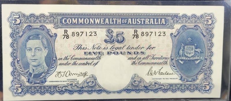 AUSTRALIAN NOTE Five Pound Banknote, Armitage & Mcfarlane 582940+58