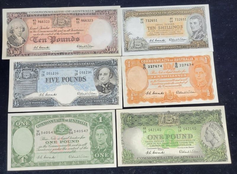 Combs & Wilson, Five Pounds, Ten Pounds, Two Ten Shillings, Two One Pound Most Uncirculated