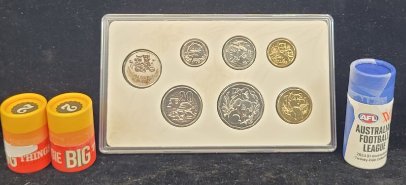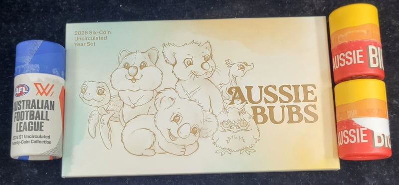 2026 Six Aussie Bubs Coins, 2024 $1 Afl Twenty Coin Collection, 22025 $1 Aussie Big Things Nine And Ten Coin Collection
