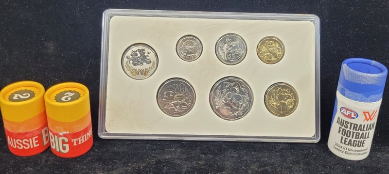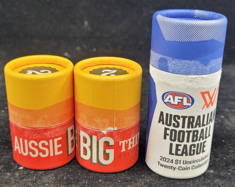 2026 Six Coin Aussie Bubs, 2024 $1 Afl Twenty Coin Collection, 2025 $1 Aussie Big Things Ten Coin Collection