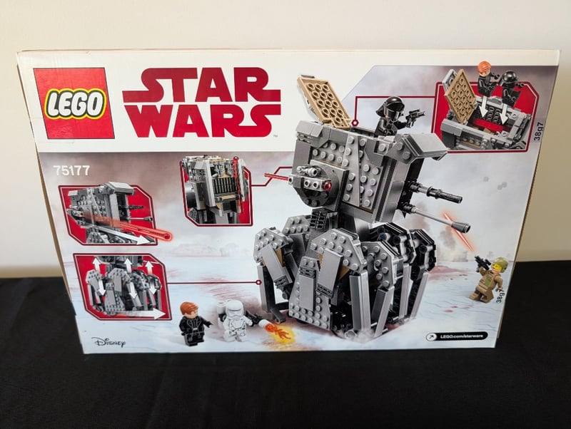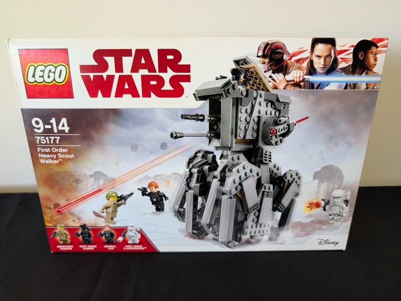 LEGO STAR WARS FIRST ORDER HEAVY SCOUT WALKER SET 75177Item Size: Height: 40cm, Width: 30cm, Depth: 10cm, Weight: 2KgLego Star Wars Set 75177 Featuring The First Order Heavy Scout Walker Buildable Vehicle From The Sequel Trilogy. The Set Includes Four Minifigures (First Order Stormtrooper, First Order Officer, Resistance Soldier, And First Order General), A Buildable Walker With Articulated Legs And Rotating Turret, Removable Cockpit Section, And Action Elements Including Spring-Loaded Shooters. Suitable For Ages 9-14. Box Displays Original Artwork And Disney Branding. Appears Complete With Original PackagingCondition: Good - Refer To Images584518+55