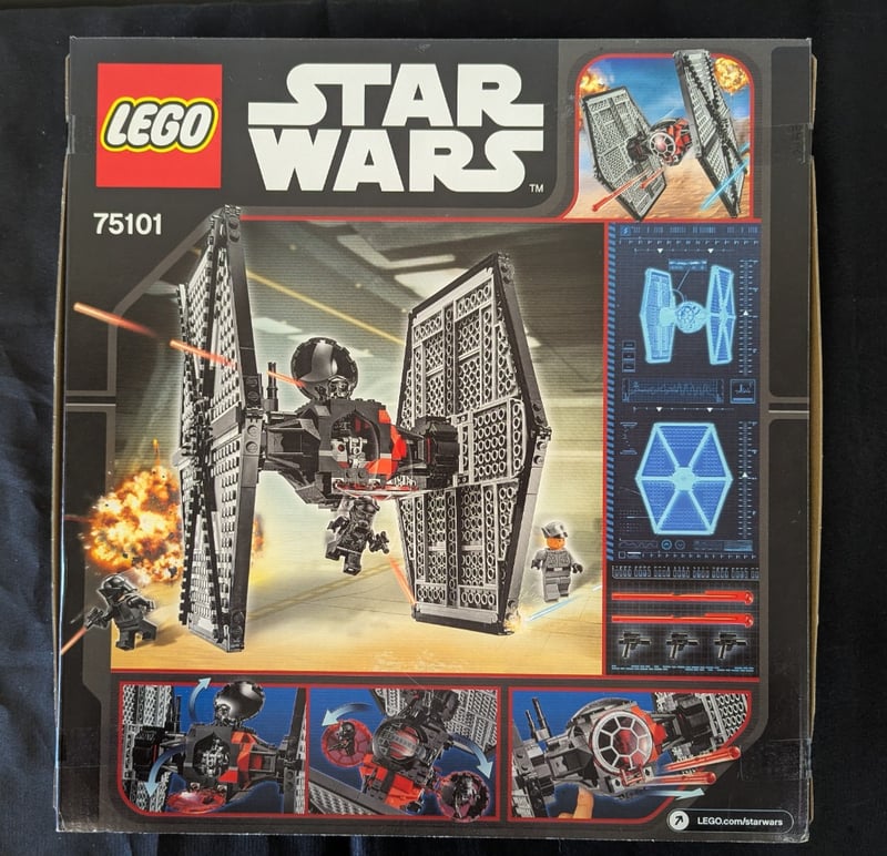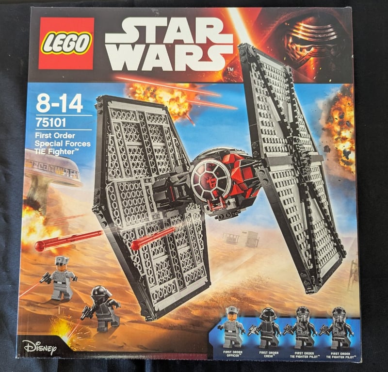 Lego Star Wars Set 75101 Featuring The First Order Special Forces Tie Fighter From The Force Awakens. Complete Buildable Spacecraft With Detailed Cockpit, Poseable Wings, And Four Minifigures Including First Order Officer, Crew Members, And Fighter Pilot. Age Recommendation 8-14 Years.