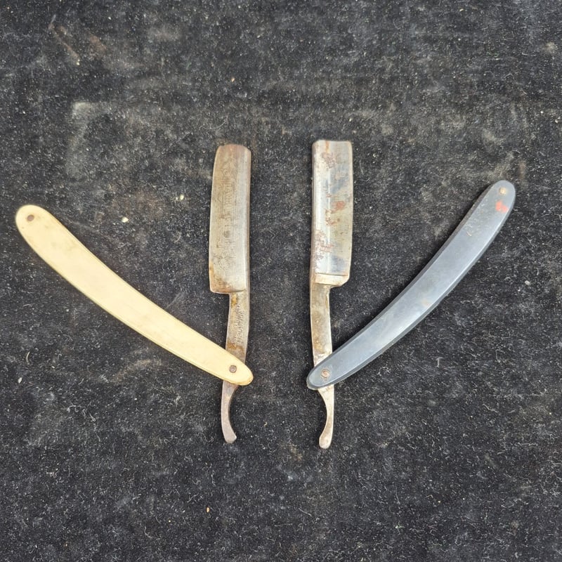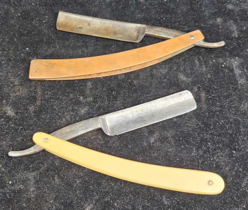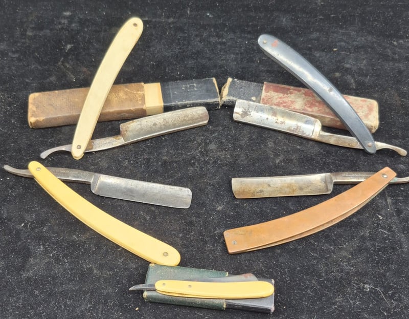 5 CUT THROAT RAZORS Curated Collection Of 5 Vintage Straight Razors Featuring Mixed Handle Materials Condition: Good - Refer To Images 587928+30