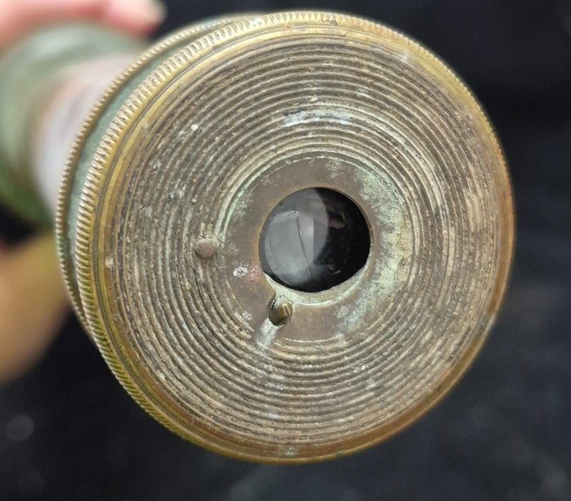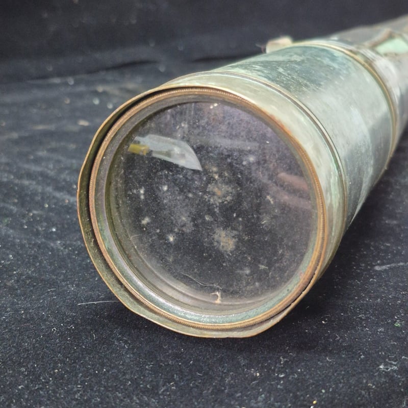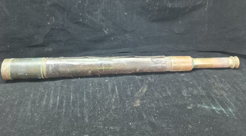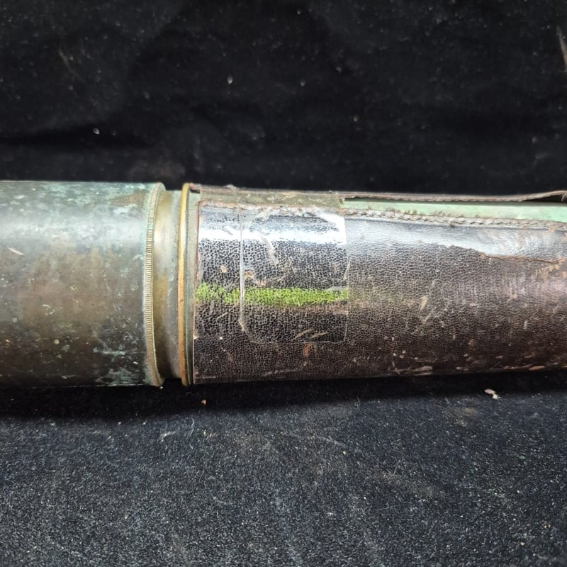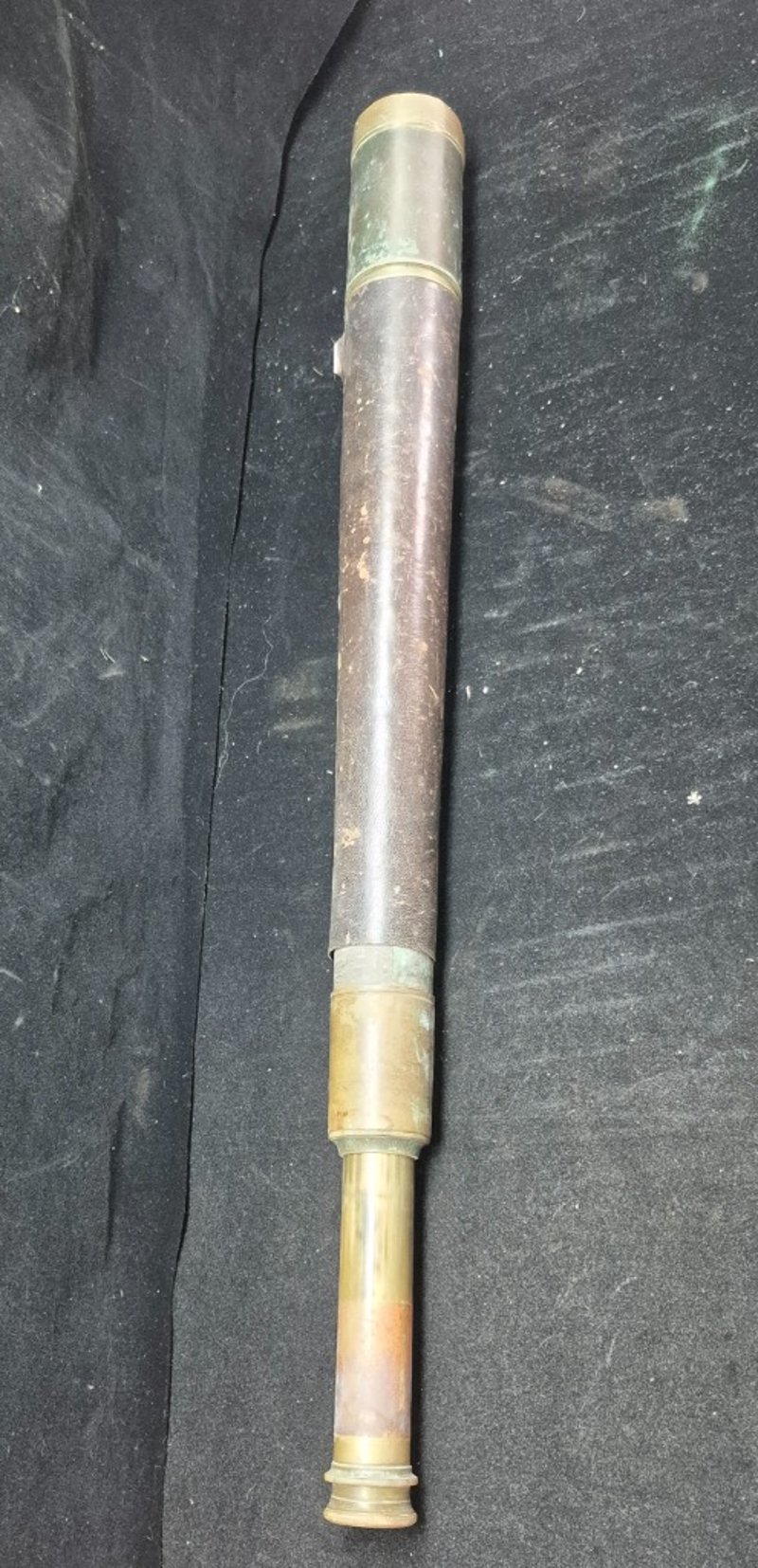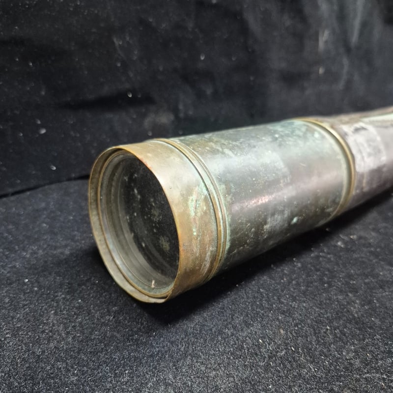 LARGE TELESCOPE IN BRASS Item Size: Width: 67cm A 19Th-Century Brass Telescope Featuring A Leather-Wrapped Cylindrical Barrel With Brass End Caps And Eyepiece. 670Mm Long, Working Condition Condition: Good - Refer To Images 587928+47