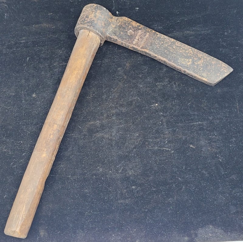 ROOF SHINGLES SPLITTER Cross-Pein Hammer Featuring A Dual-Faced Metal Head With One Flat Striking Surface And One Perpendicular Chisel-Like Edge, Mounted On A Turned Wooden Handle. Condition: Good - Refer To Images 587928+81
