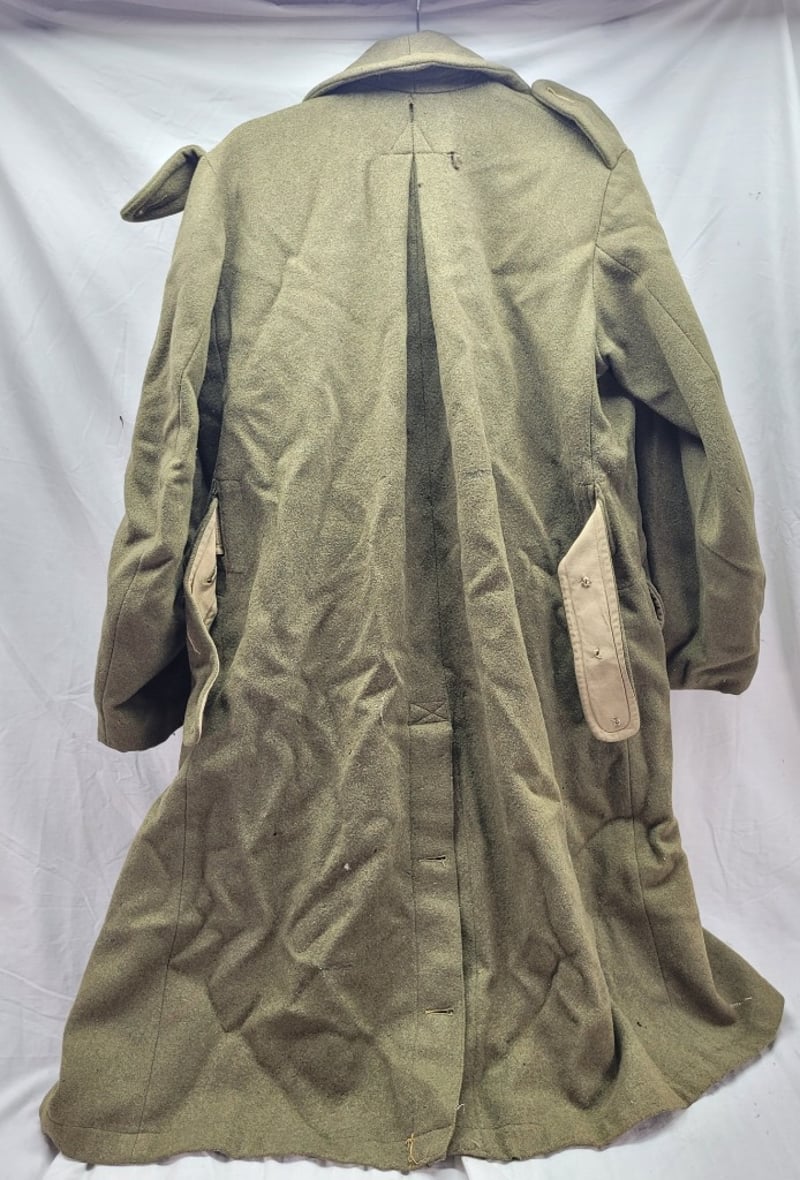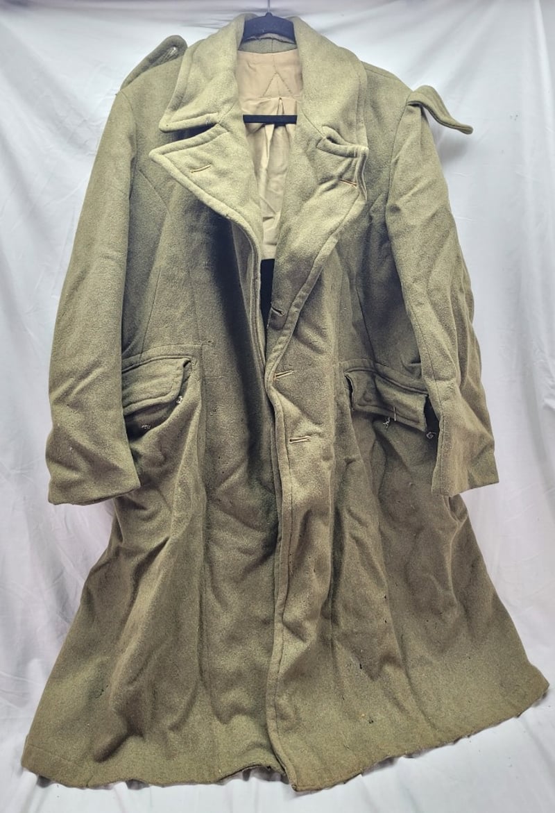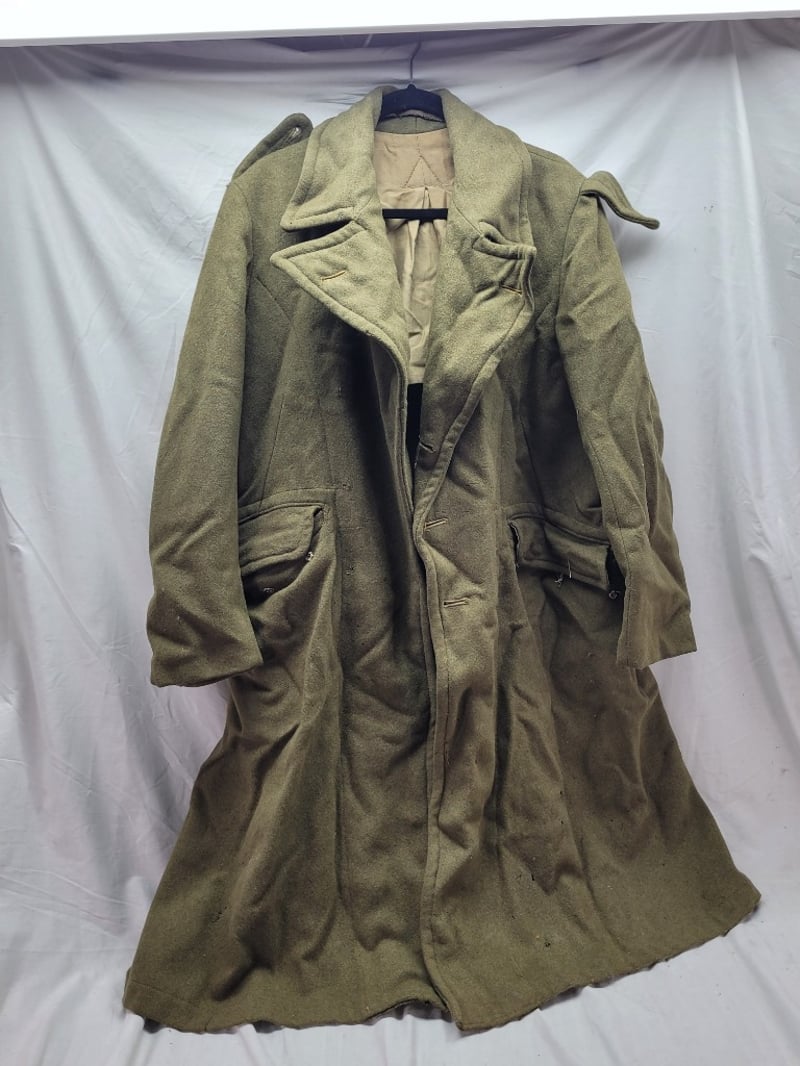 WW2 MILITARY GREAT COAT Substantial Wool Overcoat In Khaki/Olive Tone Featuring A Full-Length Silhouette With Dramatic Wide Collar And Substantial Lapels. Condition: Good - Refer To Images 587928+98