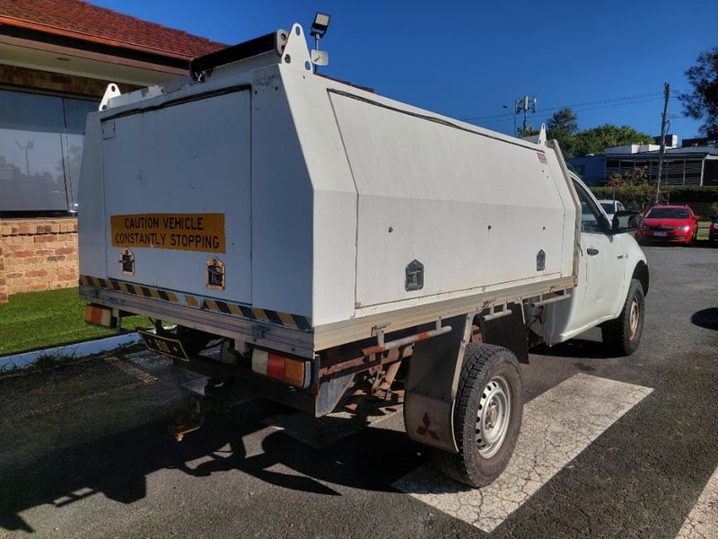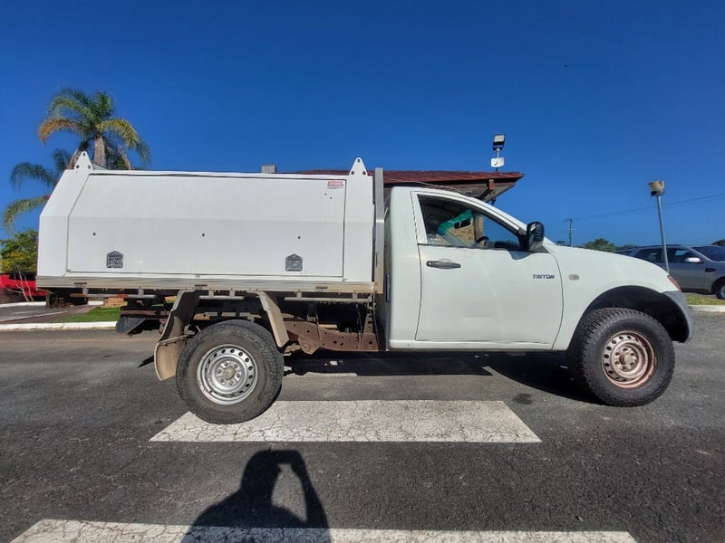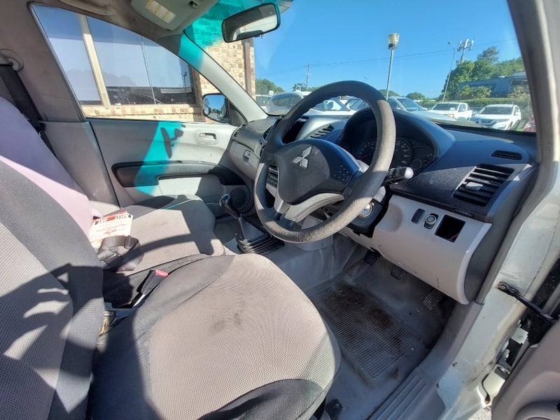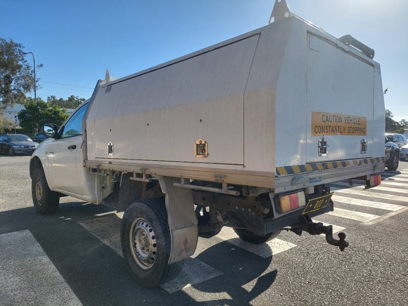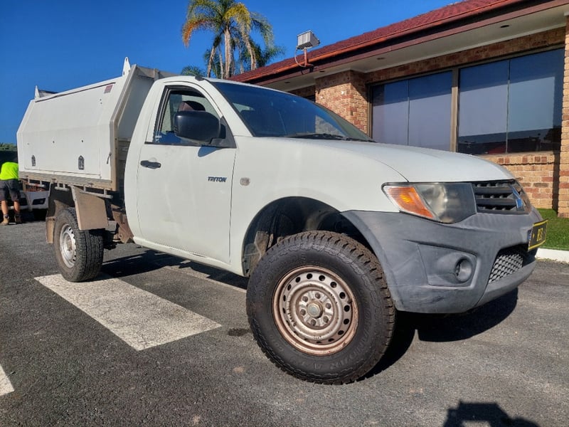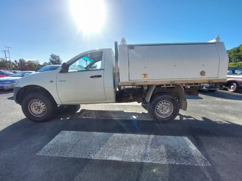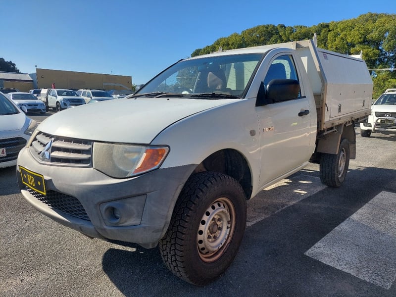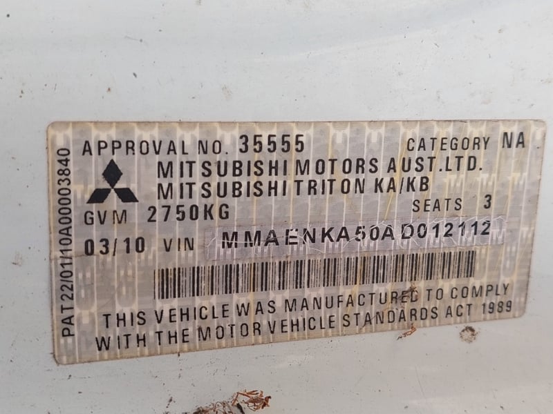 2010 `Mitsubishi Triton M10 Year: 2010 Make: `Mitsubishi Model: Triton Series: M10 Body: Single Cab Utility Drive Type: Rear wheel drive Odometer: Indicating 312,027 Engine: 2.5 I Turbo Diesel Transmission: 5-Speed Manual Colour: White Description/extras: 2010 Mitsubishi Triton KB Single Cab Utility featuring a 2.5-litre turbodiesel inline four-cylinder engine paired with a five-speed manual transmission and rear wheel drive configuration. This work-ready vehicle displays 312,027 kilometres on the odometer and is finished in white with factory tray and toolbox. The cab accommodates three occupants and retains original Mitsubishi interior appointments including manual climate controls and AM/FM radio. Engine bay presents cleanly with turbocharger intact and serviceable auxiliaries. Undercarriage exhibits patina consistent with genuine work usage, featuring original suspension geometry and functional coupling arrangement. Tyres display moderate tread remaining. Service records documenting scheduled maintenance intervals are present. Original owner's manual and service documentation included. Engine Light, Minor scuff marks to cab exterior, light surface rust to tray floor, moderate wear to seat fabrics, minor dent to driver's side door panel, light corrosion evident on trailer coupling components, patina to undercarriage frame, minor abrasion to headlamp lens.. Inspection recommended. VIN: MMAENKA50AD012112 ENG No: 4G64UCAG2369 (Key #D17) Lloyds stock #657474+1 #PCV