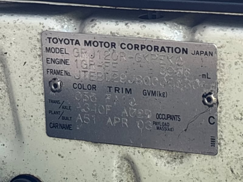 UNRESERVED 2003 Toyota Prado GRJ120R