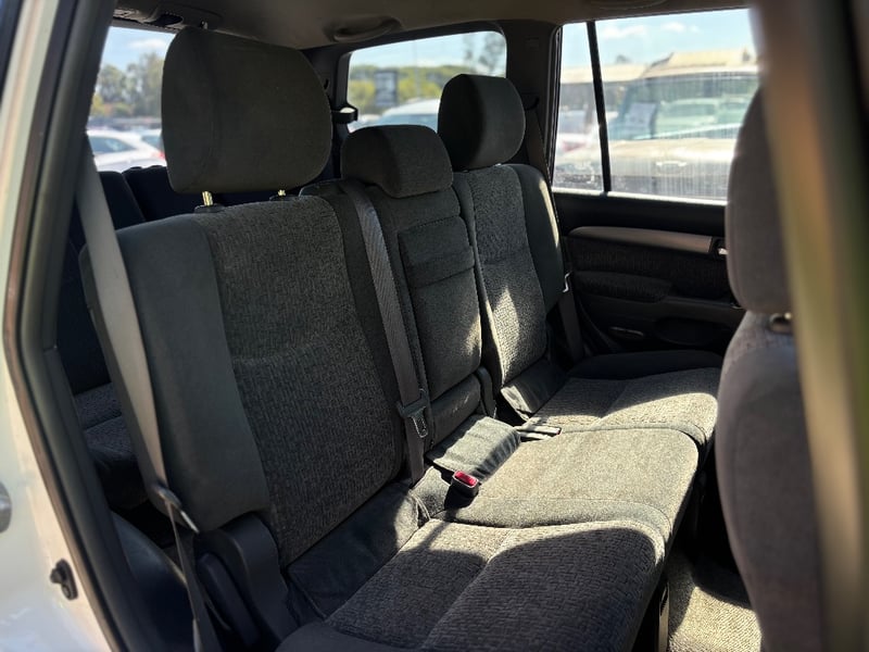 Exceptional 2009 Toyota Land Cruiser Prado GRJ120R in Pearl White, presenting as a well-maintained four-wheel-drive family SUV with seven seats and outstanding versatility. This five-door model features a robust 4.0-litre naturally-aspirated V6 petrol engine paired with a smooth five-speed automatic transmission, delivering reliable performance across diverse driving conditions. The comprehensive service history documentation and factory-issued warranty materials demonstrate meticulous care and ownership. Odometer reading of 442,221 kilometres reflects genuine highway and mixed-use driving. The vehicle retains its original specifications including factory alloy wheels, tow hitch package, and roof-mounted equipment rails. Interior appointments include fabric upholstery, functional air-conditioning controls, and factory-fitted entertainment system. This Prado represents genuine Toyota durability and practicality, suitable for family transport or recreational duties. Right-hand-drive configuration confirms Australian market specification. Minor scuff marks on exterior trim, slight oxidation on tow ball coupling, cosmetic wear to door handle covers, minor surface corrosion on vehicle nameplate. Dashboard Cracks as per photos. Inspection recommended.