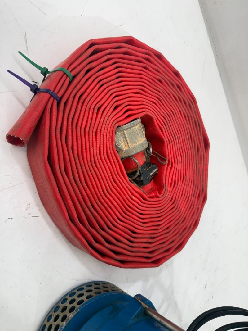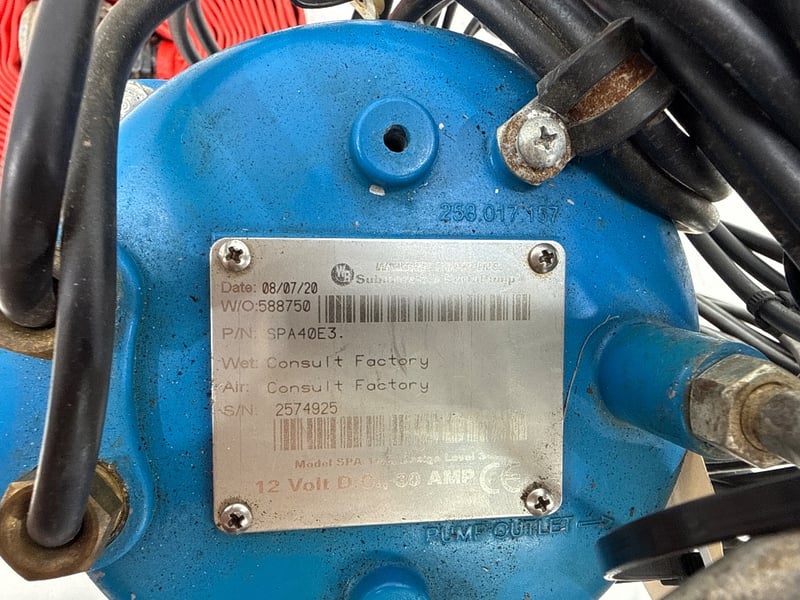 Submersible Porta Pump, 12v DC 30 Amp, Product Number 588750, Serial Number 2574925, with Flat Water Hose open end Fitting, Untested