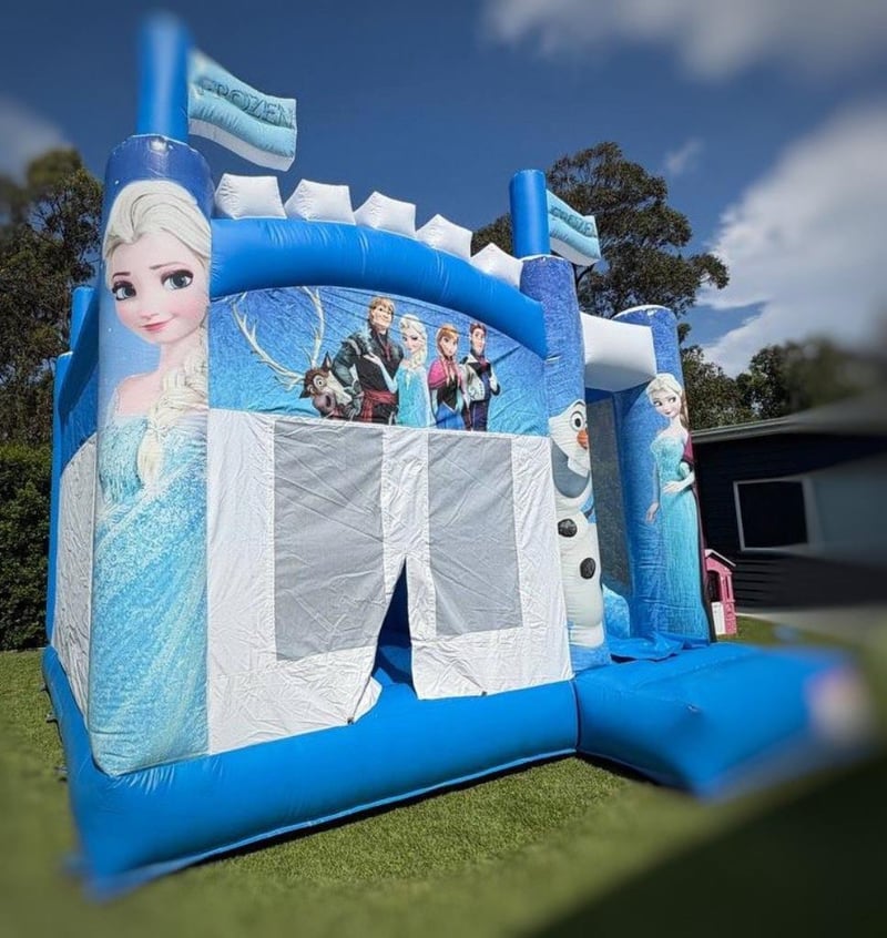 Jumping Castle - Frozen Large size 5.2x5 commercial grade jumping castle combo with slide. Note: All jumping castles are new and been inflated only once for photos and check out purpose 423-10