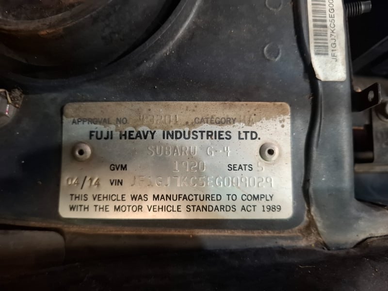 2014 Subaru Impreza GJ 2.0i Year: 2014 Make: Subaru Model: Impreza Series: GJ Badge: 2.0i Body: 4-Door Sedan Drive Type: All wheel drive Odometer: Indicating 190,743 Kilometers Engine: 2.0 Petrol Transmission: Continuously variable Colour: Grey Seats: 5 Description/extras: Air Conditioning, Power windows, SRS, Digital dash, Tinted windows, Cruise control, Alloy wheels, AUX / USB, Central locking, Owners manual. After market head unit and rims, low Profile tyres, Apple car play and Android Auto via usb, Bluetooth and hands free, space saver spare tyre, 2 keys Interior is worn Exterior paint has faded, new front bumper is matte black, Rear parcel tray is cracked and broken. VIN: JF1GJ7KC5EG009029 ENG No: 1261171 Sold unregistered (Key #A16) Lloyds stock #655478+1