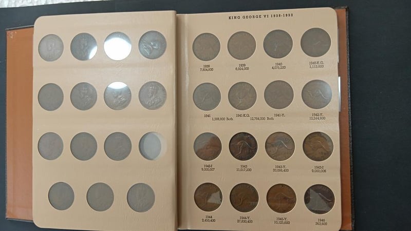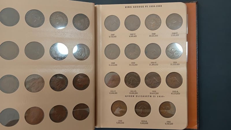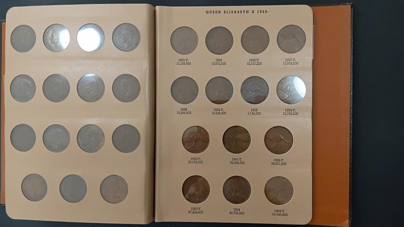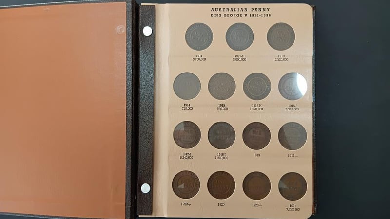 1911-1964 PENNY AUST (CV $3300 REN 32ND PG 49-51) Dansco Supreme Folder 1925 Vf 1946 Vf No 1930, 74 Coins, F-Unc, Nice Set. 11600+21