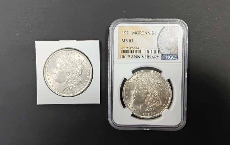 USA SILVER MORGAN DOLLAR 1890+1921 Higher Grade Aunc And Ms 62 Unc Rare Set 11600+17