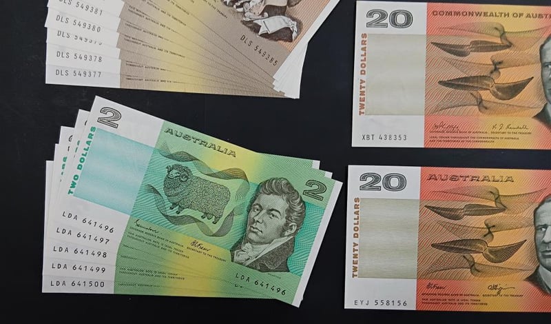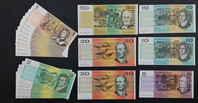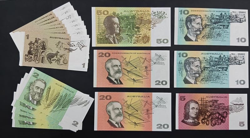 COLLECTION OF AUSTRALIAN DECIMAL NOTE 1993 $50, 1982 9 X $1 Dollar Consec, 1985 5X $2 Cosec, 1968 $10+$20, 1989 $10, 1989 $20 Dollars Notes Ef To Unc 11600+20