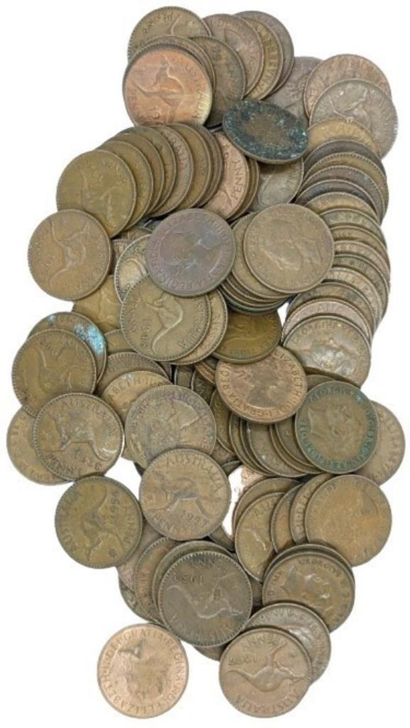ONE KILO OF AUSTRALIA KGV/KING GEORGE VI/QUEEN ELIZABETH MIX DATE & CONDITION BULK PENNIES & HALF PENNIES MIXED 311191+94