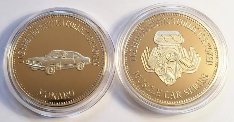 "YOU ARE BUYING 1 X ""HOLDEN MONARO"" MUSCLE CAR SERIES 1 0Z HGE 999 24K GOLD COIN/TOKEN LIMITED TO ONLY 2,500 WORLD WIDE. An Increadible New Array Of New Designs For Car Lovers, These New Muscle Cars Series Coins/Tokens Are Great To Collect, They Are A 1 Ounce Coin/Token 999 24K Gold Heavy Gold Electroplate. They Are In Great Fresh Of The Mint Condition" 11604+10