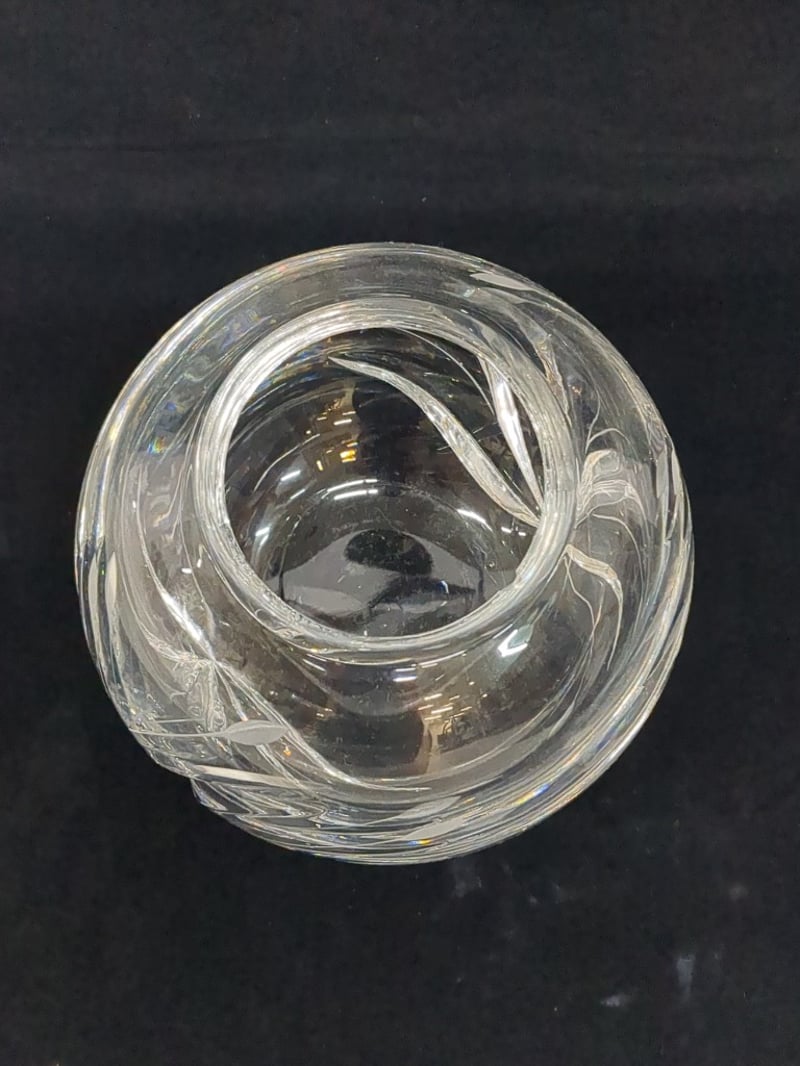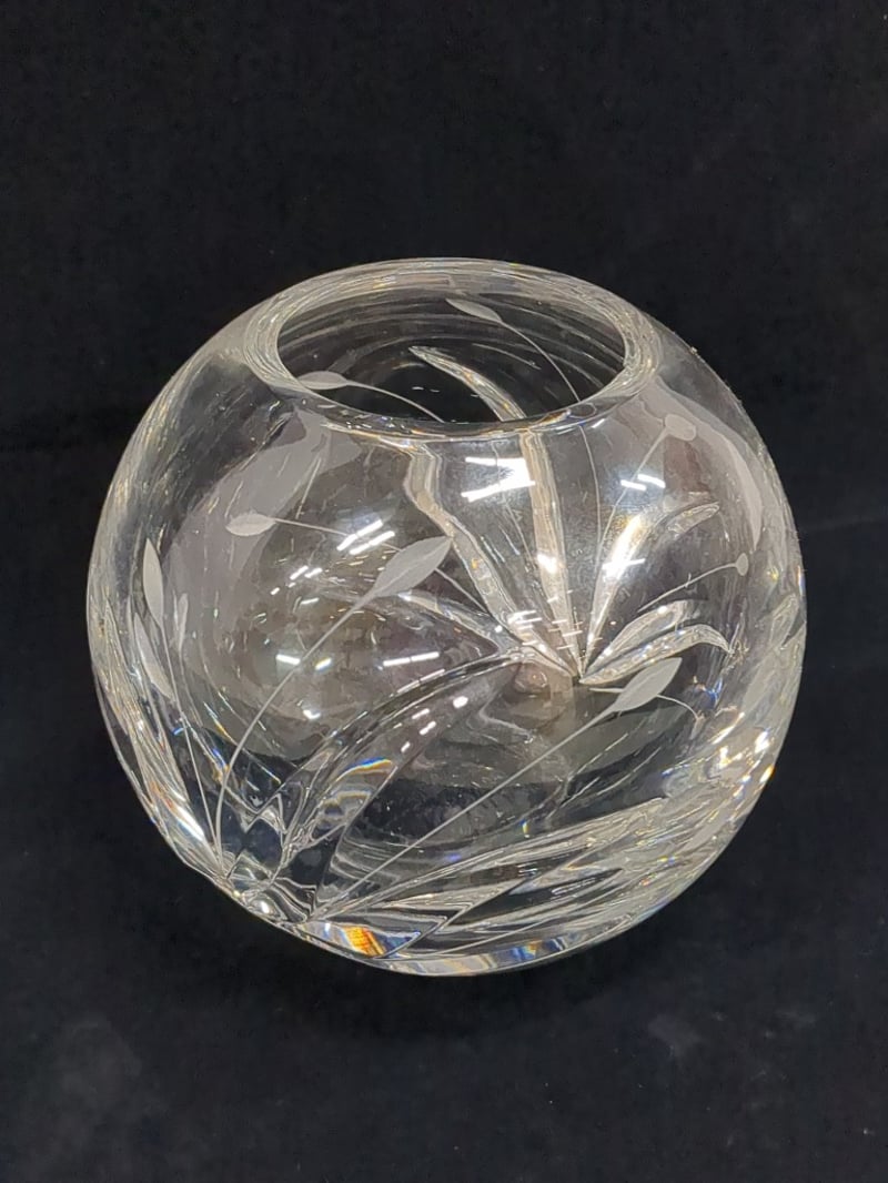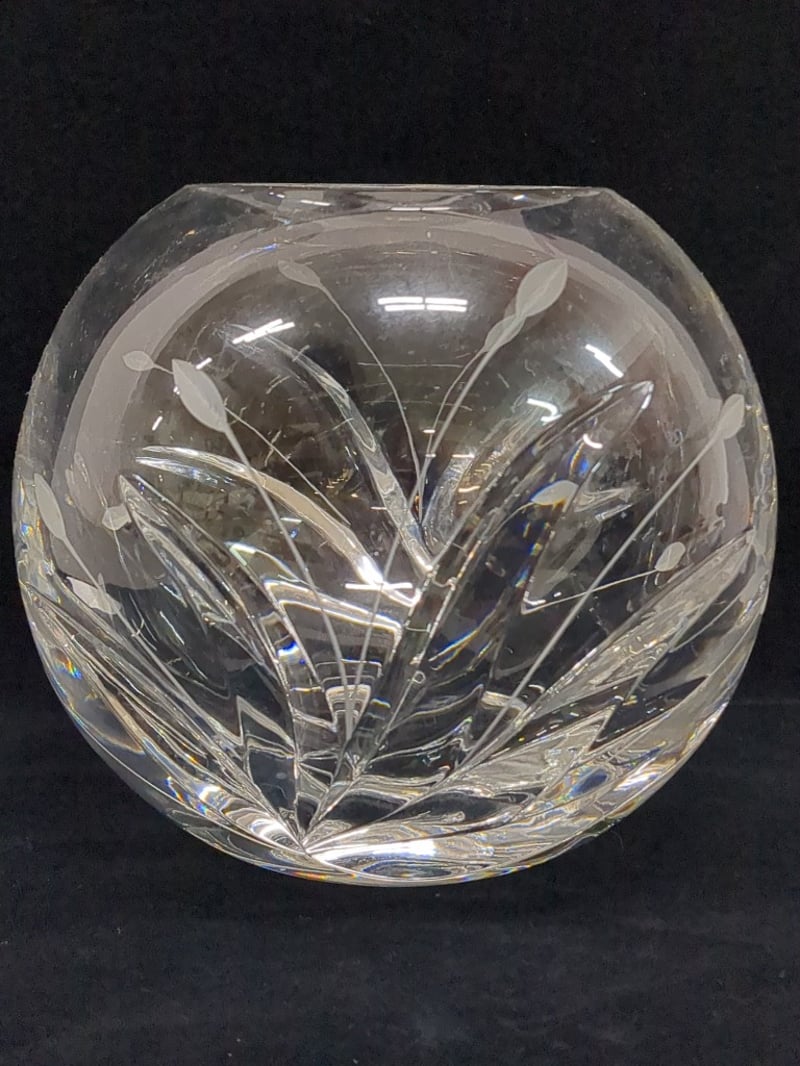 CRYSTAL CUT GLASS VASE WITH GEOMETRIC SUNBURST PATTERN Item Size: Height: 15cm, Width: 15cm, Depth: 15cm, Weight: 1Kg An Elegant Crystal Vase Featuring Deeply Incised Geometric Sunburst And Radiating Leaf Patterns. The Piece Exhibits Sophisticated Hand-Cut Detailing With Sharp, Defined Facets That Refract Light Beautifully. The Rounded Spherical Body Transitions To A Wide Open Rim. The Cut Design Demonstrates Skilled Craftsmanship With Symmetrical Panelled Sections Emanating From The Base. Condition: Good - Refer To Images 587930+1