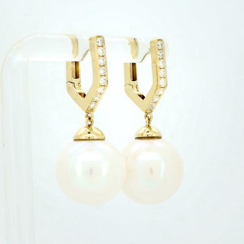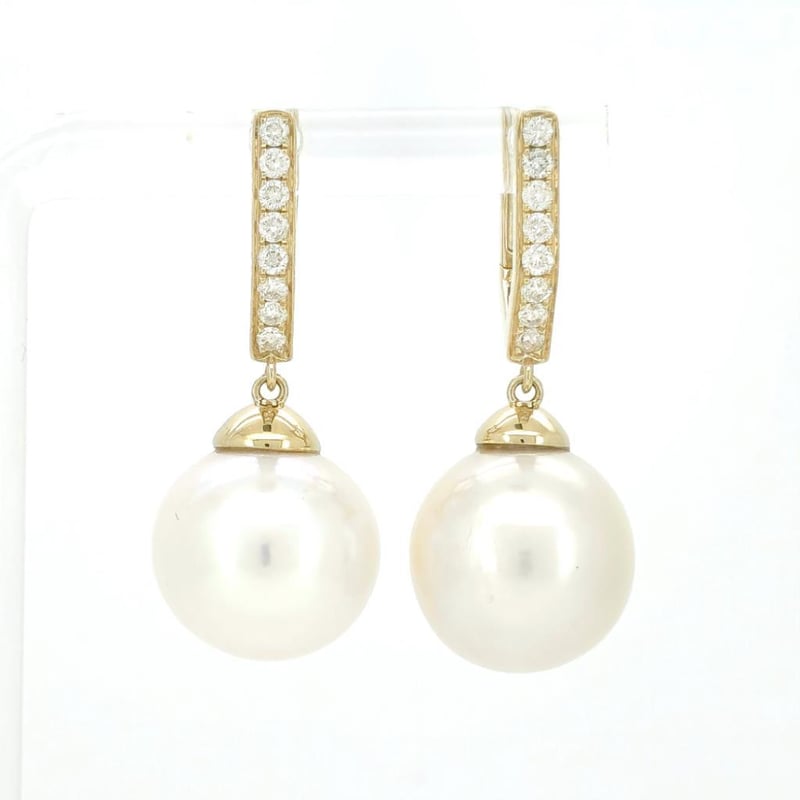 9CT YELLOW GOLD SOUTH SEA PEARL AND DIAMOND DROP EARRINGS Featuring, 2 Silvery-White South Sea Pearls (12-12.50Mm Size, Aa Grade), With 16 Round Brilliant Cut Diamonds (0.35Ct Tdw, G-H Colour, Vs2-Si1 Clarity), Claw Set. Valuations Provided by an Independent Third-Party Professional Not Directly Associated With Lloyds Auctions at AUD $18900This valuation has been conducted by an independent third-party professional. The valuation amount is an assessment by the issuing valuer and does not reflect the auction value of the item. Any inquiries regarding the valuation should be directed to the issuing valuer (refer to contact details on the certificate), as Lloyds Auctions has no affiliation or influence over the valuation, the valuer, or the stated amount. Condition: Good - Refer Images 0584528+2184