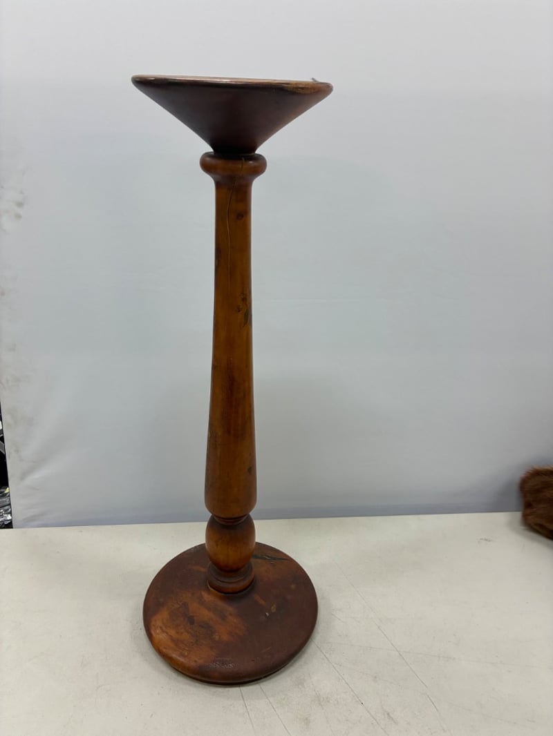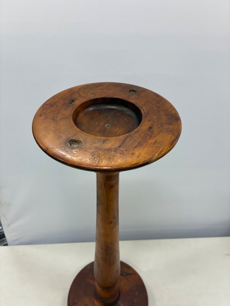 WOODEN ASHTRAY STAND WITH TURNED DETAILS