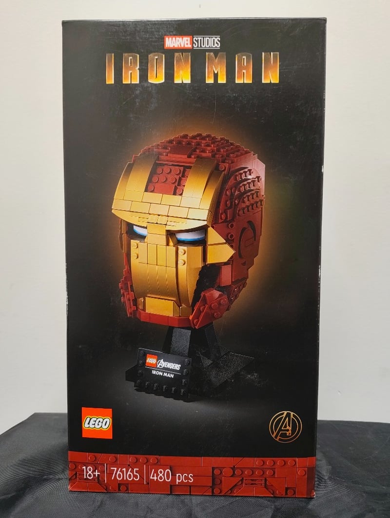 Lego Marvel Studios Iron Man Helmet (Set 76165) Featuring 480 Precision-Engineered Pieces. Adult Collectible Buildable Helmet With Metallic Gold And Red Colour Scheme, Articulated Faceplate Design, And Illuminated Visor Detail. Includes Display Stand Base With "Lego Avengers Iron Man" Branding. Age 18+ Assembly Set Showcasing Intricate Lego Brick Construction And Authentic Marvel Character Engineering.