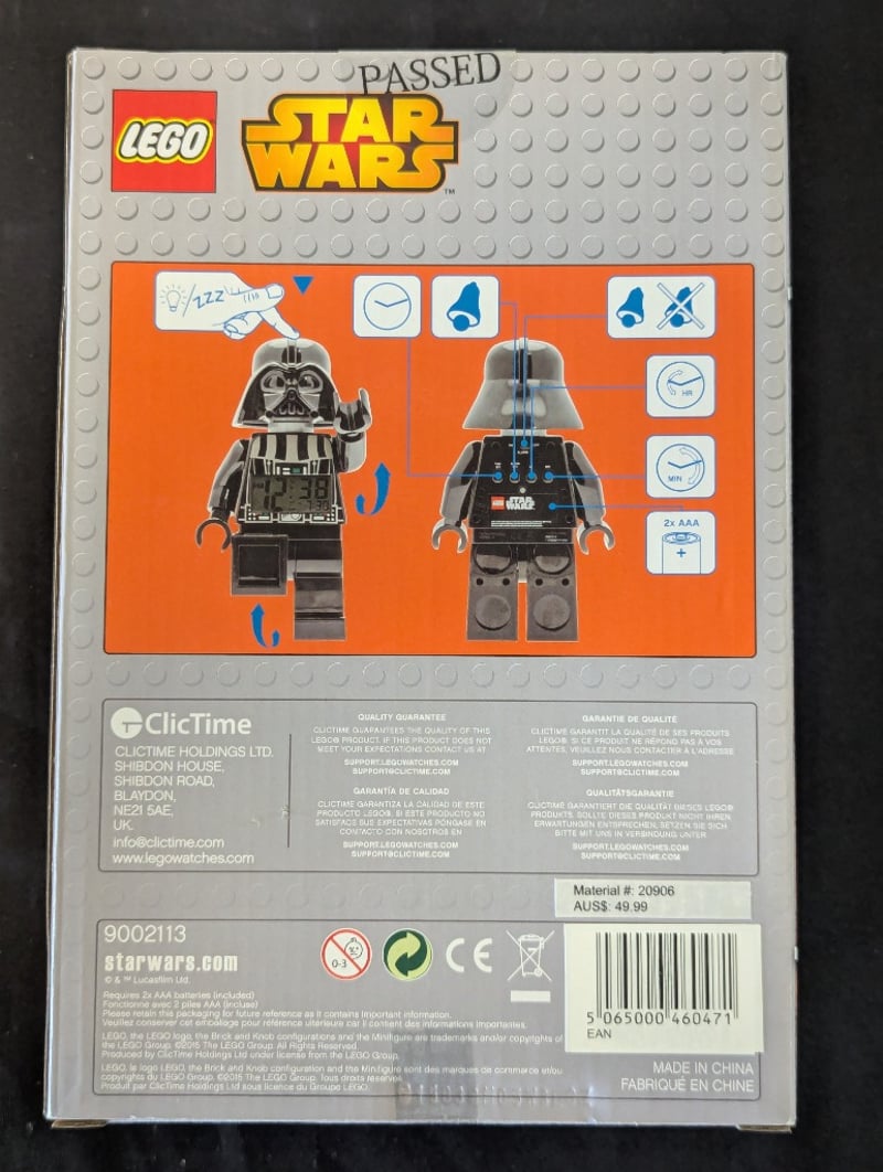 LEGO STAR WARS DARTH VADER MINIFIGURE ALARM CLOCK