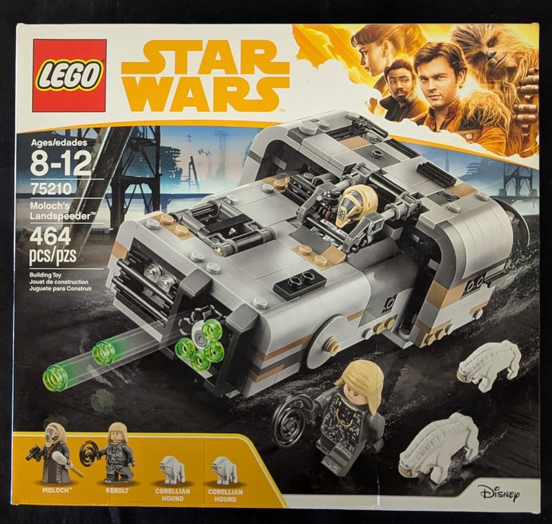 Lego Star Wars Set 75210 Featuring Moloch'S Landspeeder From The Solo Film Universe. Complete 464-Piece Building Set With Opening Cockpit, Detailed Engine Components, Dual Flick-Fire Missile Launchers, And Collapsible Landing Gear. Includes Four Minifigures