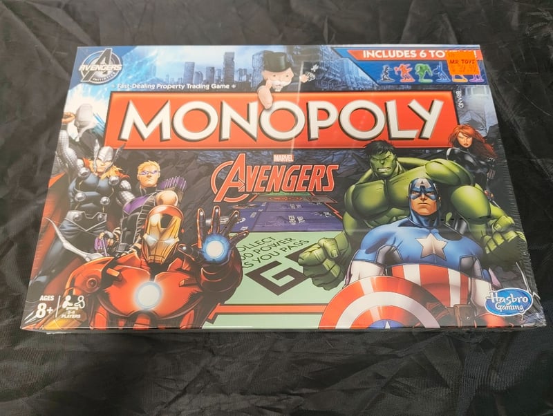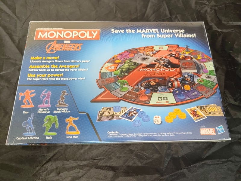 Sealed Marvel Avengers-Themed Monopoly Board Game By Hasbro Gaming. Features 6 Collectible Avengers Character Tokens Including Iron Man, Captain America, Hulk, Thor, Black Widow, And Hawkeye. Game Includes Themed Game Board, Property Cards, Avengers Tokens, Currency, And Instruction Guide. Objective Involves Assembling The Avengers, Liberating Avengers Tower, And Utilizing Superhero Powers To Achieve Victory. Original Packaging Intact With Protective Shrink Wrap. Suitable For Ages 8+, 2-3 Player