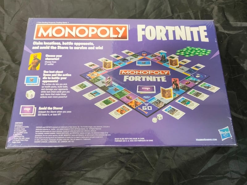 Hasbro Gaming'S Monopoly Fortnite Collaboration Featuring Fast-Paced Property Trading Mechanics Merged With Battle Royale Gameplay. Players Claim Fortnite Locations, Engage Opponents In Combat, And Navigate The Encroaching Storm To Survive. Game Includes Gameboard, Player Tokens Representing Iconic Fortnite Characters, Loot Chest Items, Action Cards, Property Cards, Dice, And Comprehensive Rules. Designed For 2-8 Players Aged 13+. Sealed/Unopened Condition With Original Factory Packaging Intact.
